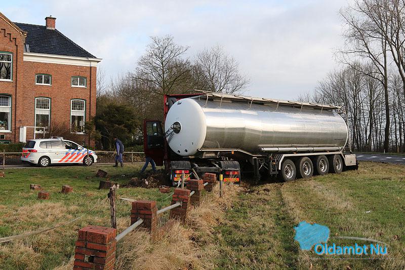 Midwolda – Een tankwagen is dinsdagmorgen op de N362 (Gereweg) bij Midwolda iets na de stoplichten in Scheemda uit de bocht gevlogen en op een stuk land van een boerderij tot stilstand gekomen. Hierbij nam de vrachtwagen enkele stenen muurtjes mee.