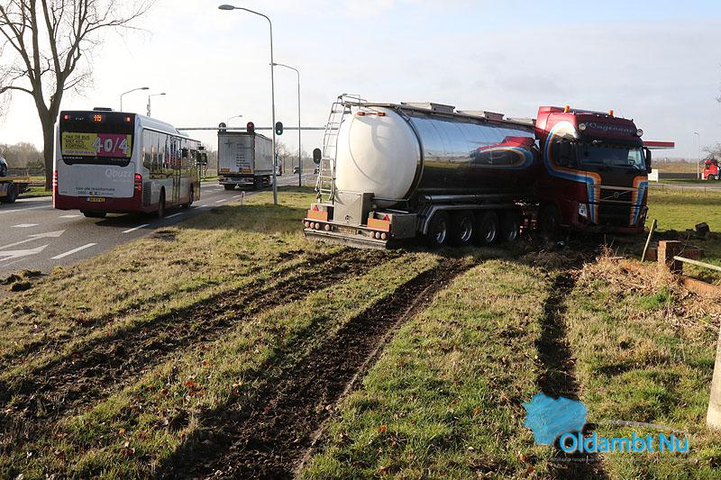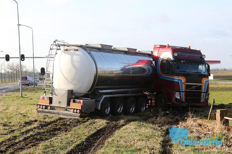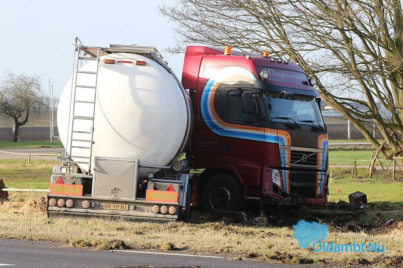 Vrachtwagen schaart op de Gereweg bij Midwolda