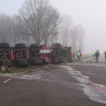 Waardoor het ongeluk gebeurde, is nog niet bekend. Mogelijk speelde de dichte mist een rol. Het is onbekend wanneer de vrachtwagen word weg getakeld.