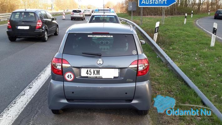 Moormerland – Afgelopen zondagavond heeft de Duitse verkeerspolitie een brommobiel van de A31 gehaald.