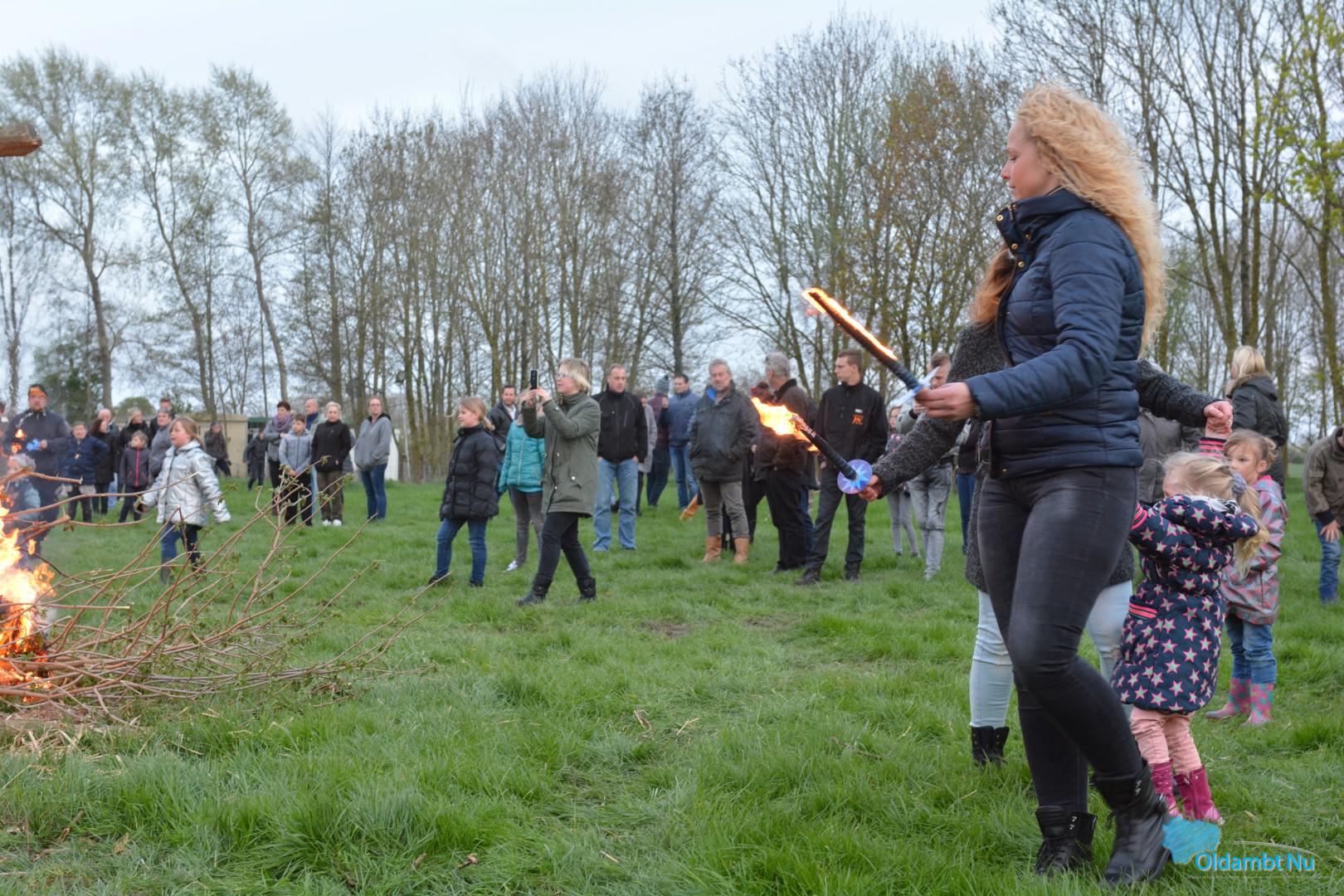 Op het terrein van ijsvereniging de Punt aan de Oude Dijk werd zondagavond een paasvuur aangestoken. ‘Kinderen van het dorp en omstreken konden mee lopen met de fakkeltocht om vervolgens de bult aan te steken.’ aldus Martin Geerdsema voorzitter van de vereniging.