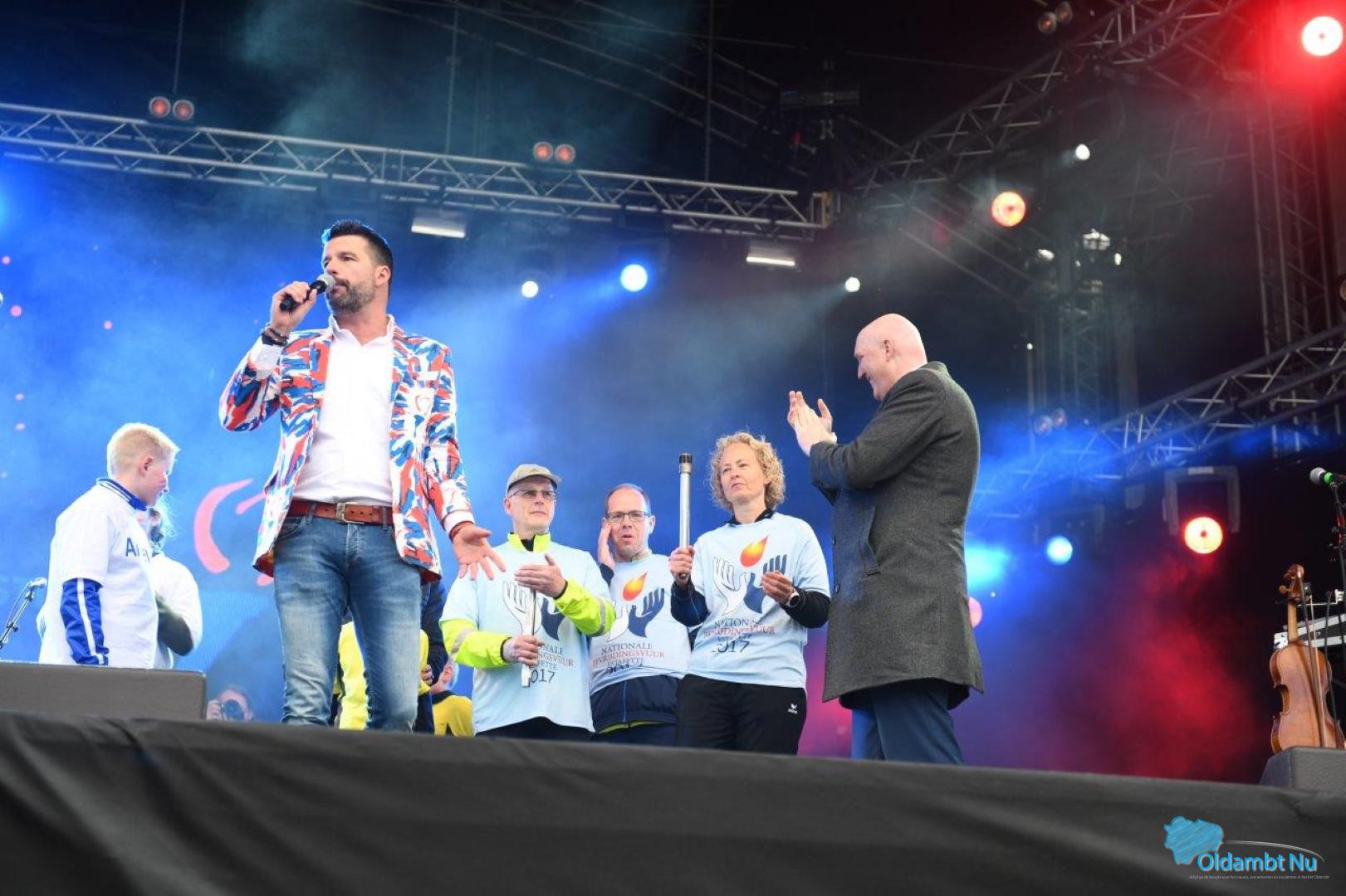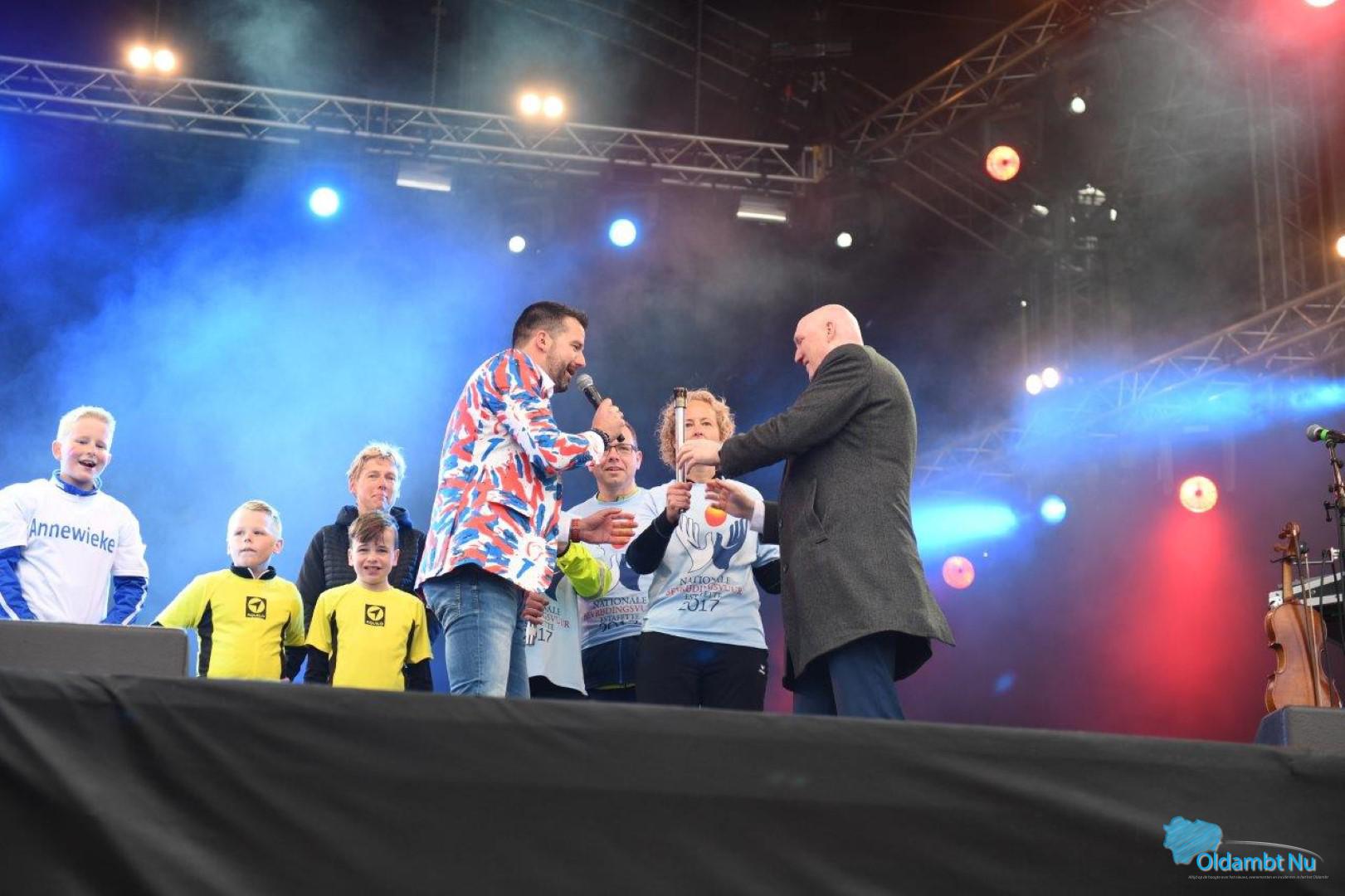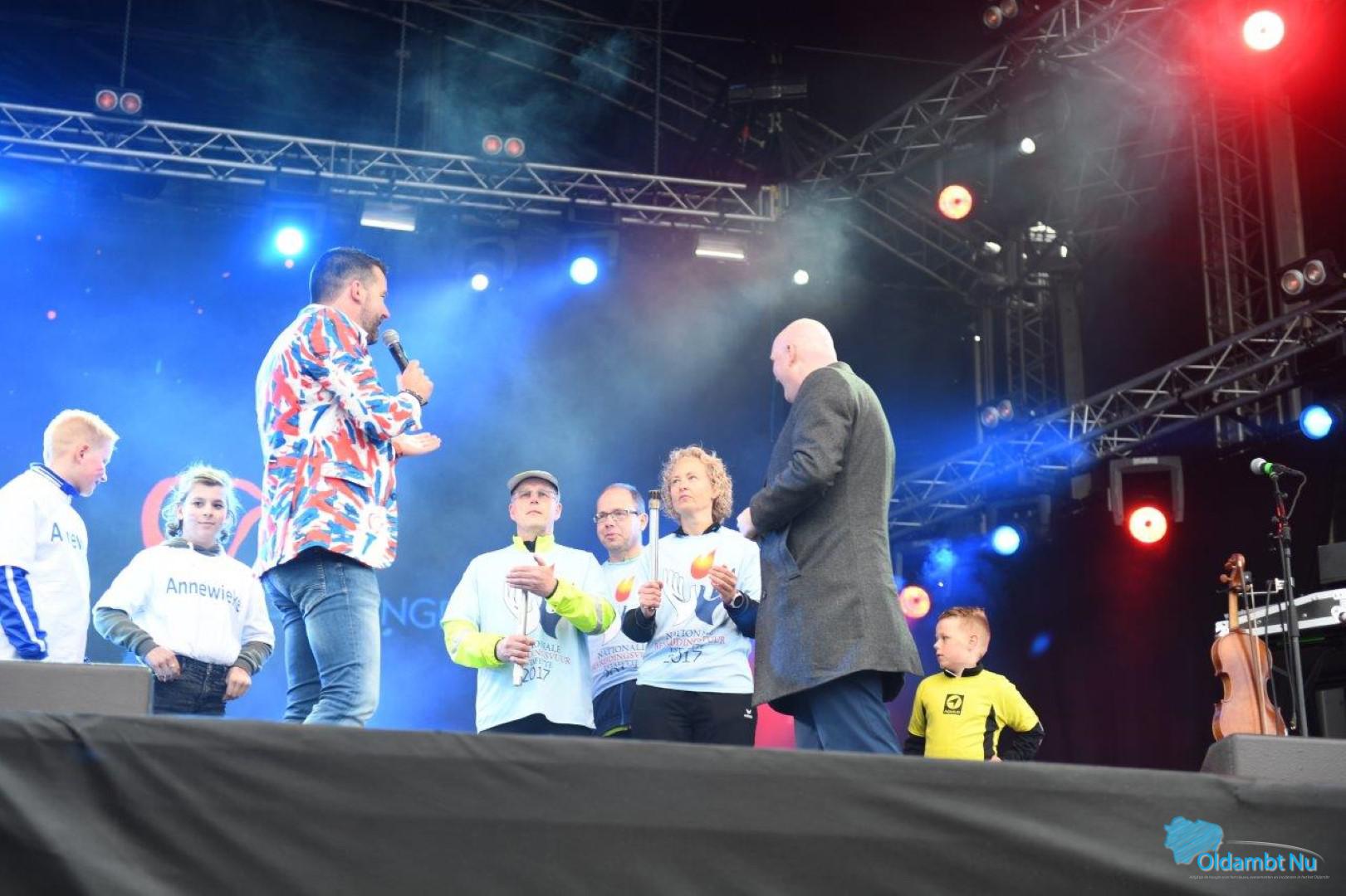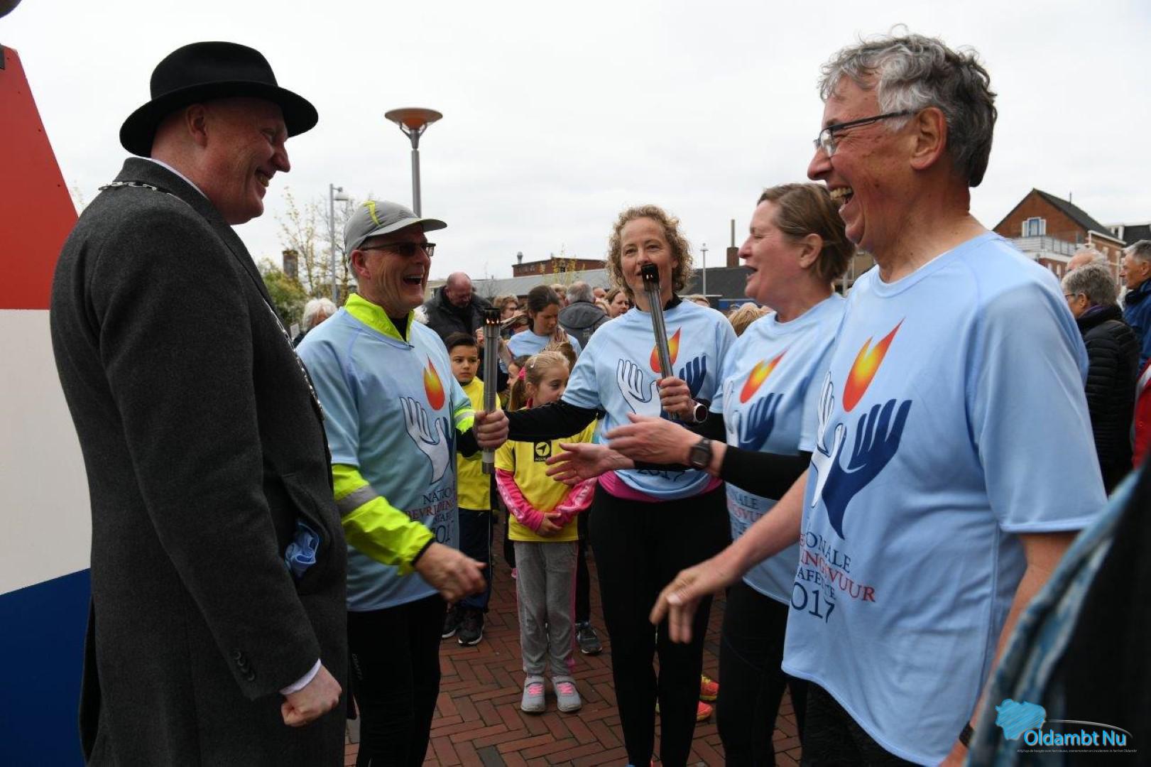 Vanmiddag rond 14:00 uur arriveerden de hardlopers met een brandende fakkel op het Klinkerplein in Winschoten. Hier werd het vuur overhandigd aan burgemeester Pieter Smit. De burgemeester hield een toespraak en ontstak vervolgens het bevrijdingsvuur.