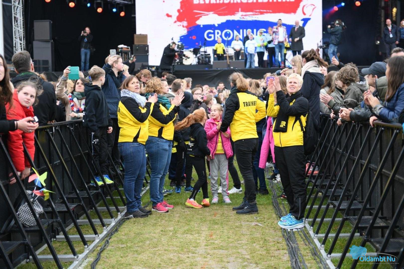 Na het ontsteken van het vrijheidsvuur in Winschoten ging de reis per bus door naar de drafbaan in Groningen. De burgemeester, de hardlopers en leerlingen van CBS Annewieke uit Scheemda hebben hier gezamenlijk symbolisch het vrijheidsvuur ontstoken onder toezicht van het publiek.