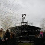 Tijdens het aansteken van het vrijheidsvuur gingen er honderden wensvlinders gemaakt door leerlingen van CBS Annewieke uit Scheemda de lucht in.