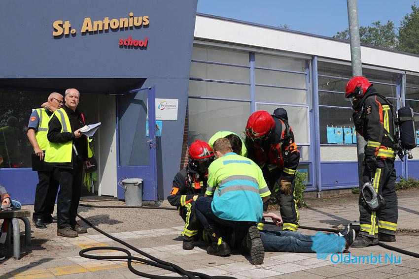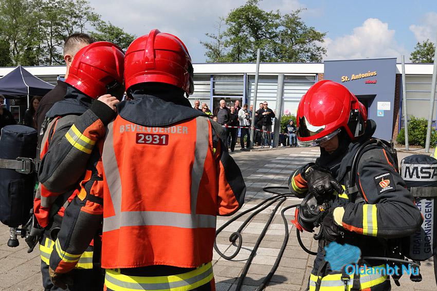 De St. Antoniusschool aan de Middenstraat in Sappemeer was zaterdag de hele dag het toneel van brandweerwedstrijden. Acht ploegen uit Groningen, Drenthe en Friesland streden in de school om de eerste plaats. Met deze toetsen/ wedstrijden worden scenario’s zo goed mogelijk nagebootst.