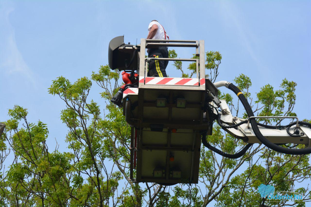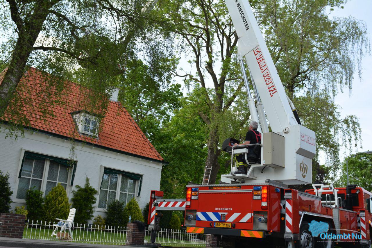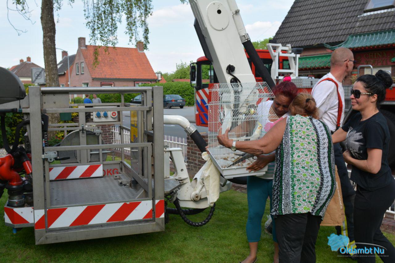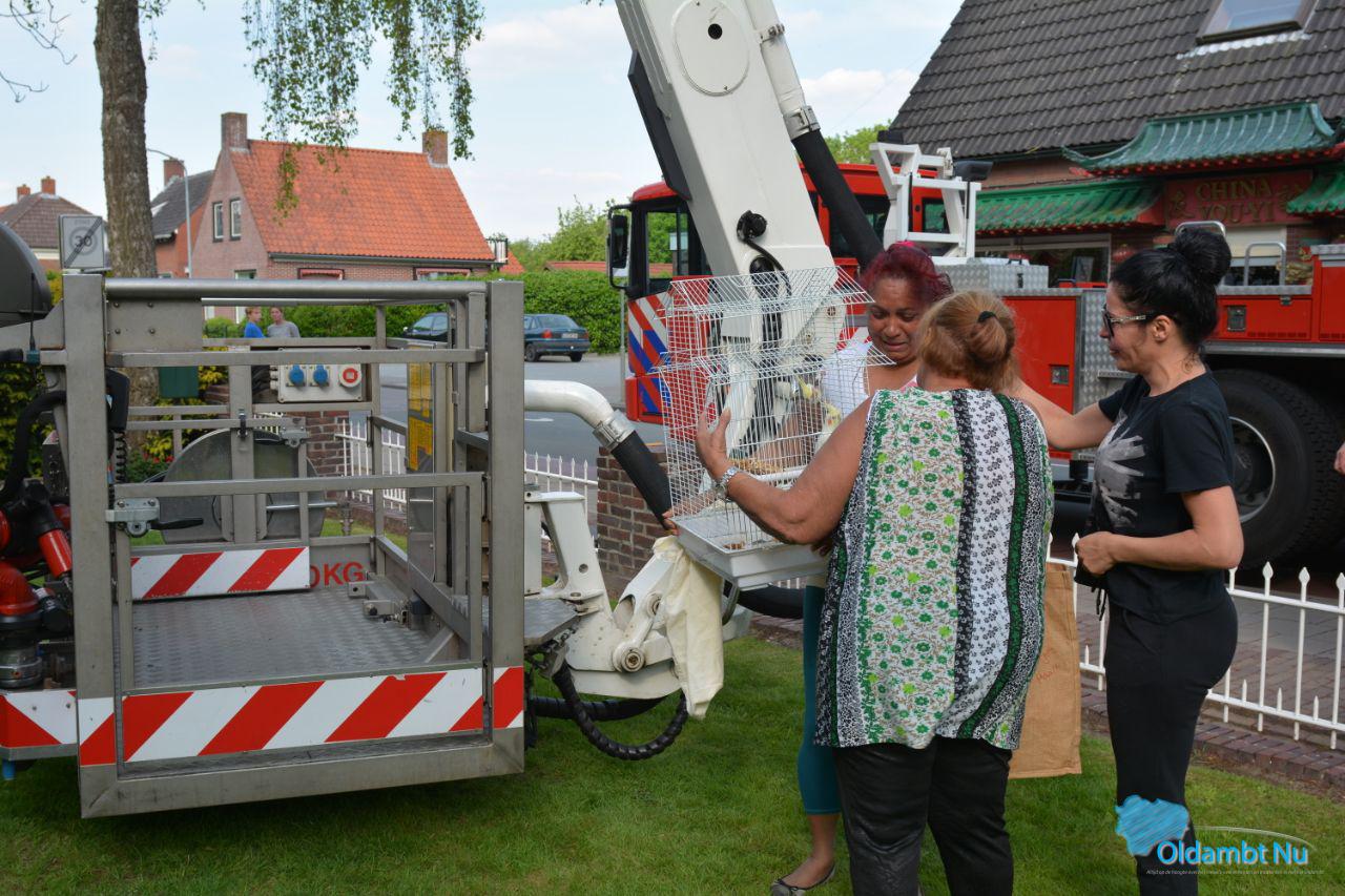 De brandweer van Winschoten heeft door middel van de hoogwerker het vogeltje uit de boom gehaald.