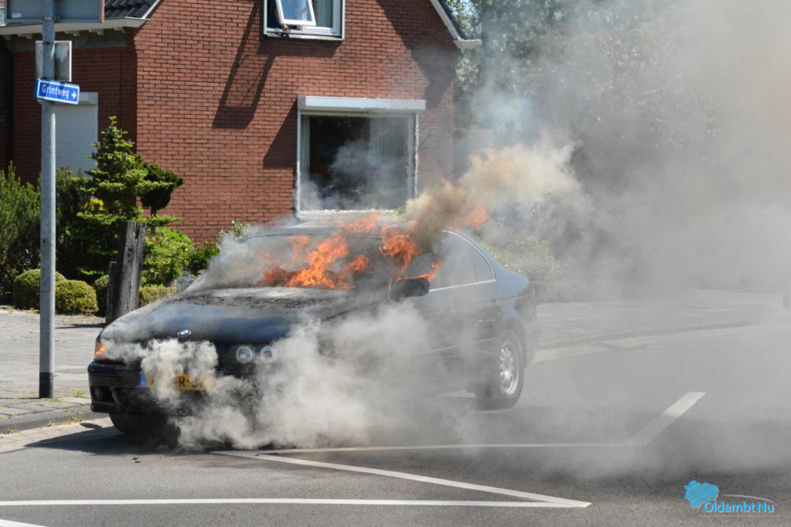 De brandweer bluste met twee stralen en schuim, maar kon de BMW niet redden. De bestuurder raakte niet gewond.
