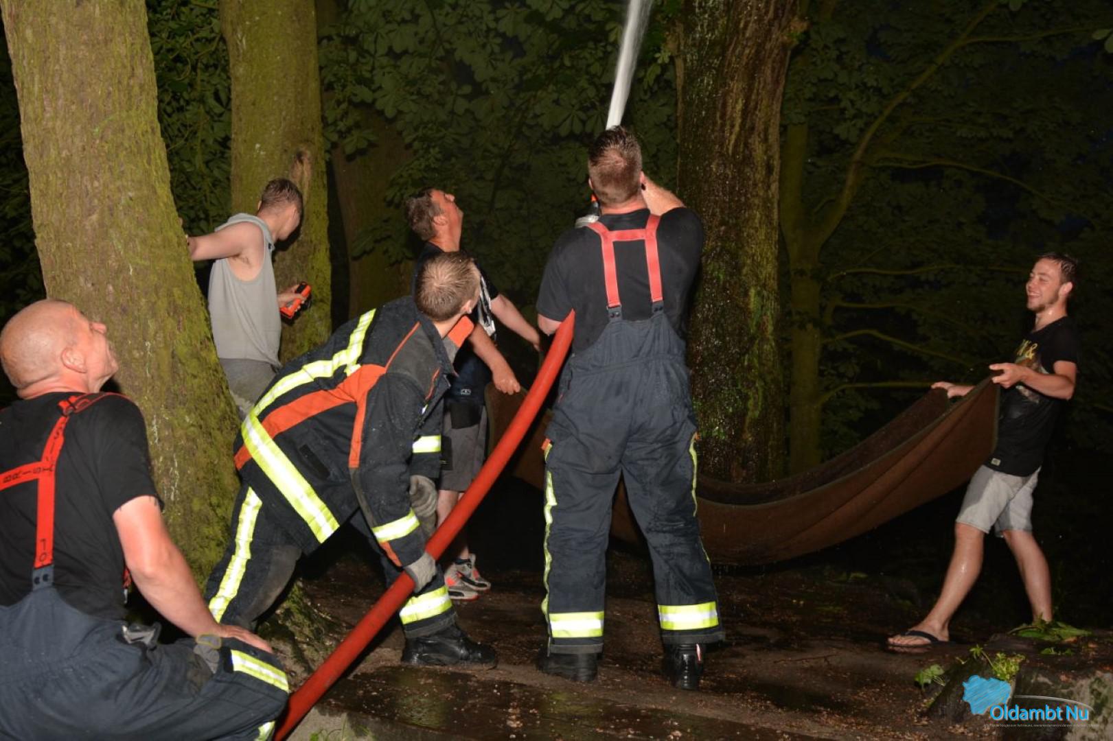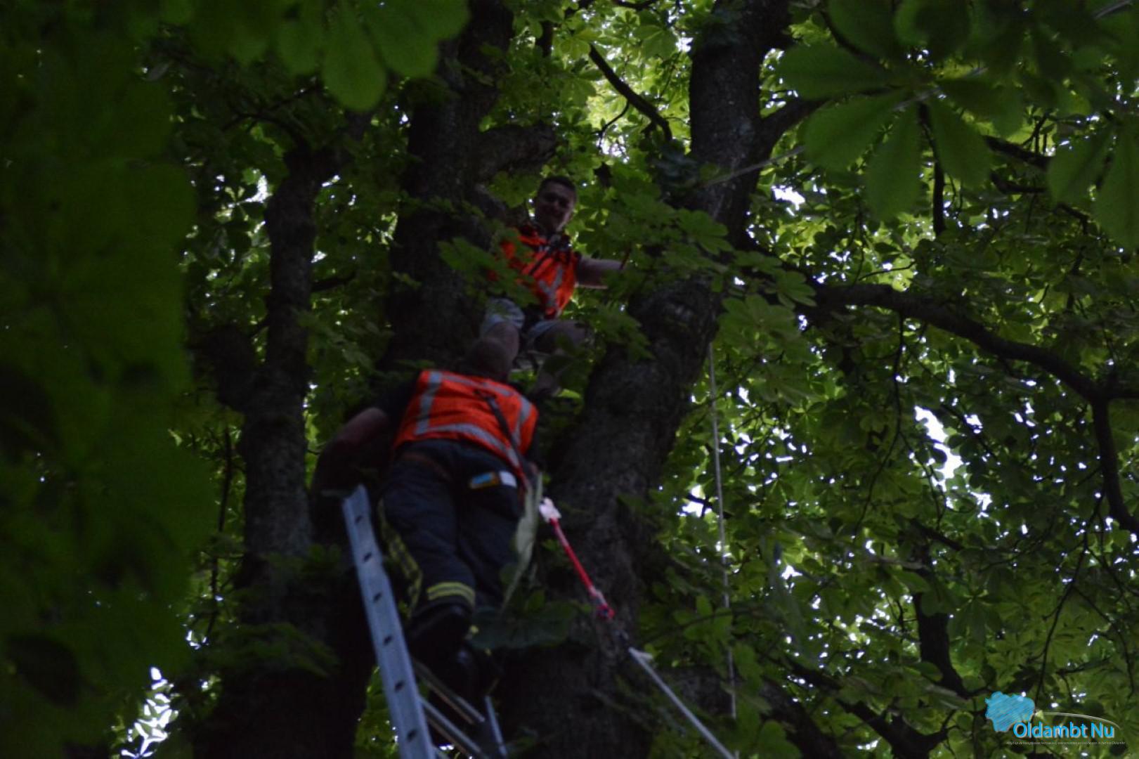 Omdat de meldkamer besloot geen brandweer in te zetten ging een buurtbewoner zelf de boom in. De man zat op ruim 15 meter hoogte in de boom waarna hij niet de boom meer uit kon. De plaatselijke brandweer heeft de man vakkundig met ladder en touwen veilig aan de grond weten te krijgen.