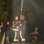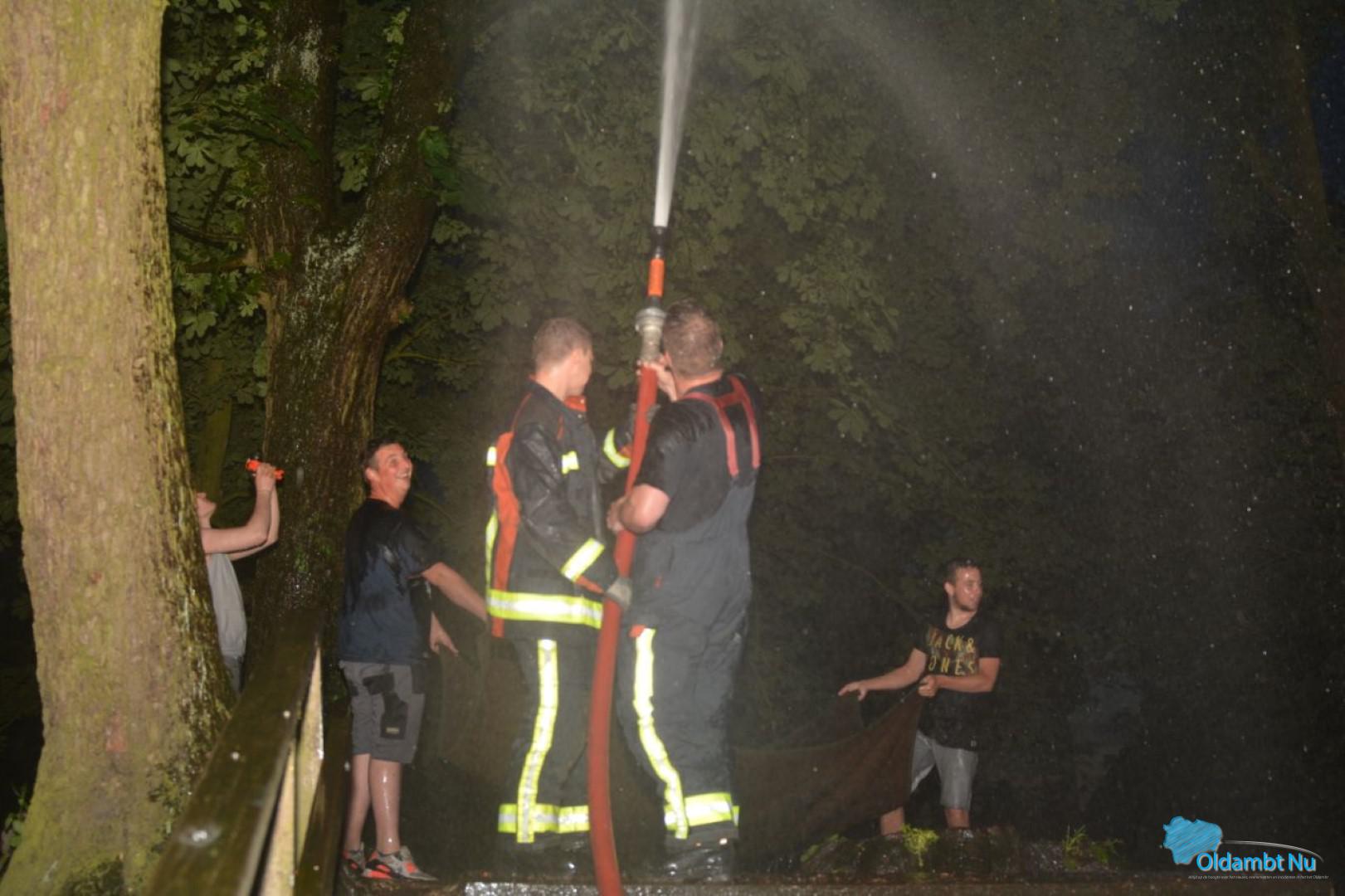 Om de kat die inmiddels op in de top van de boom zat uit de boom te krijgen spoten de brandweerlieden ruim 500 liter water de boom in. Helaas zonder succes. De kat bleef eigenwijs in de boom zitten.