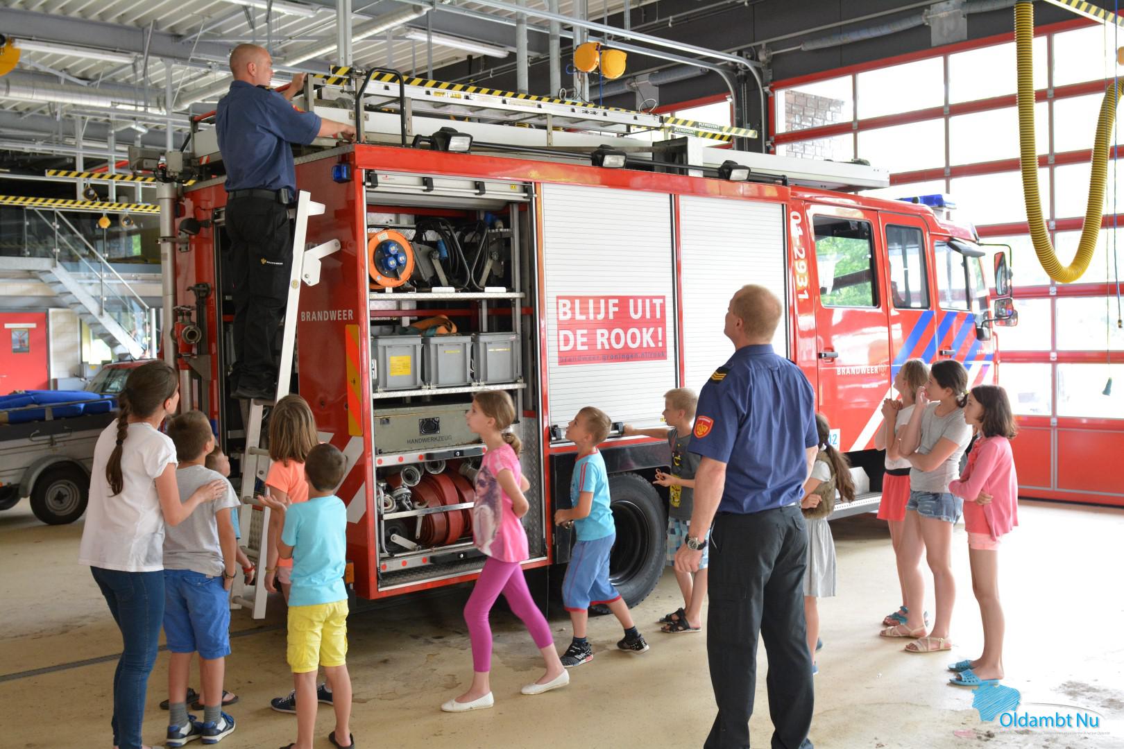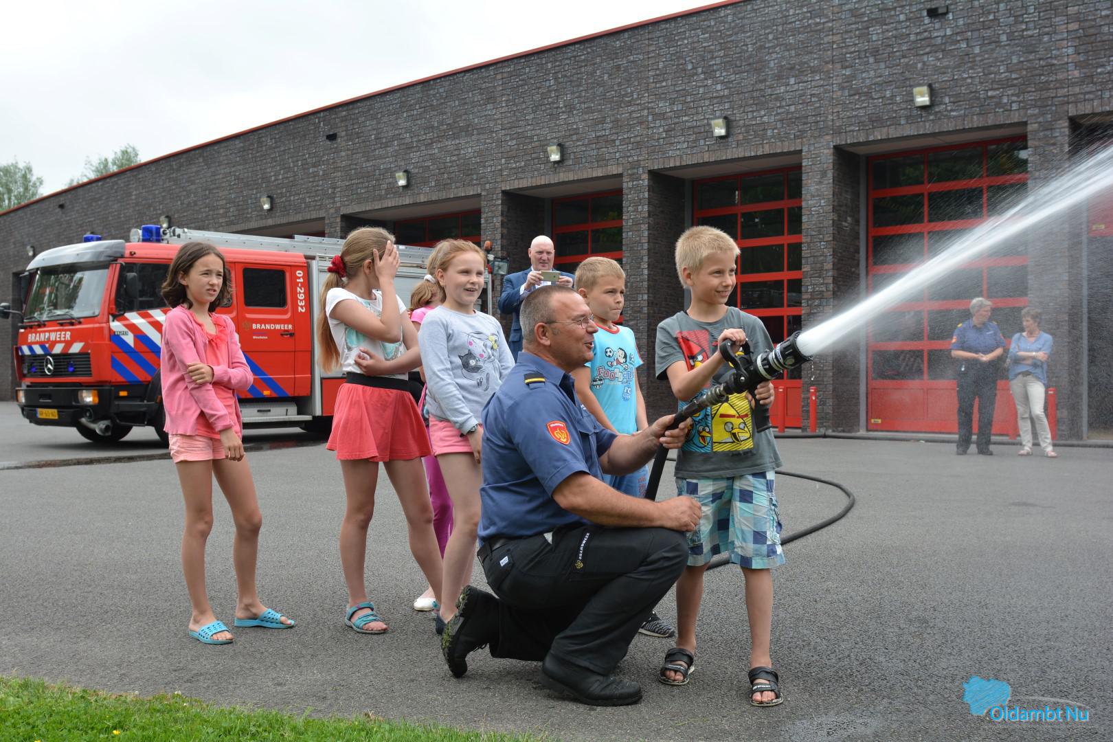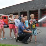 Voor de kinderen was het een leerzame dag, zo mochten zij met water spuiten en kregen ze uitleg over de voertuigen en wat hier allemaal op en in zit.