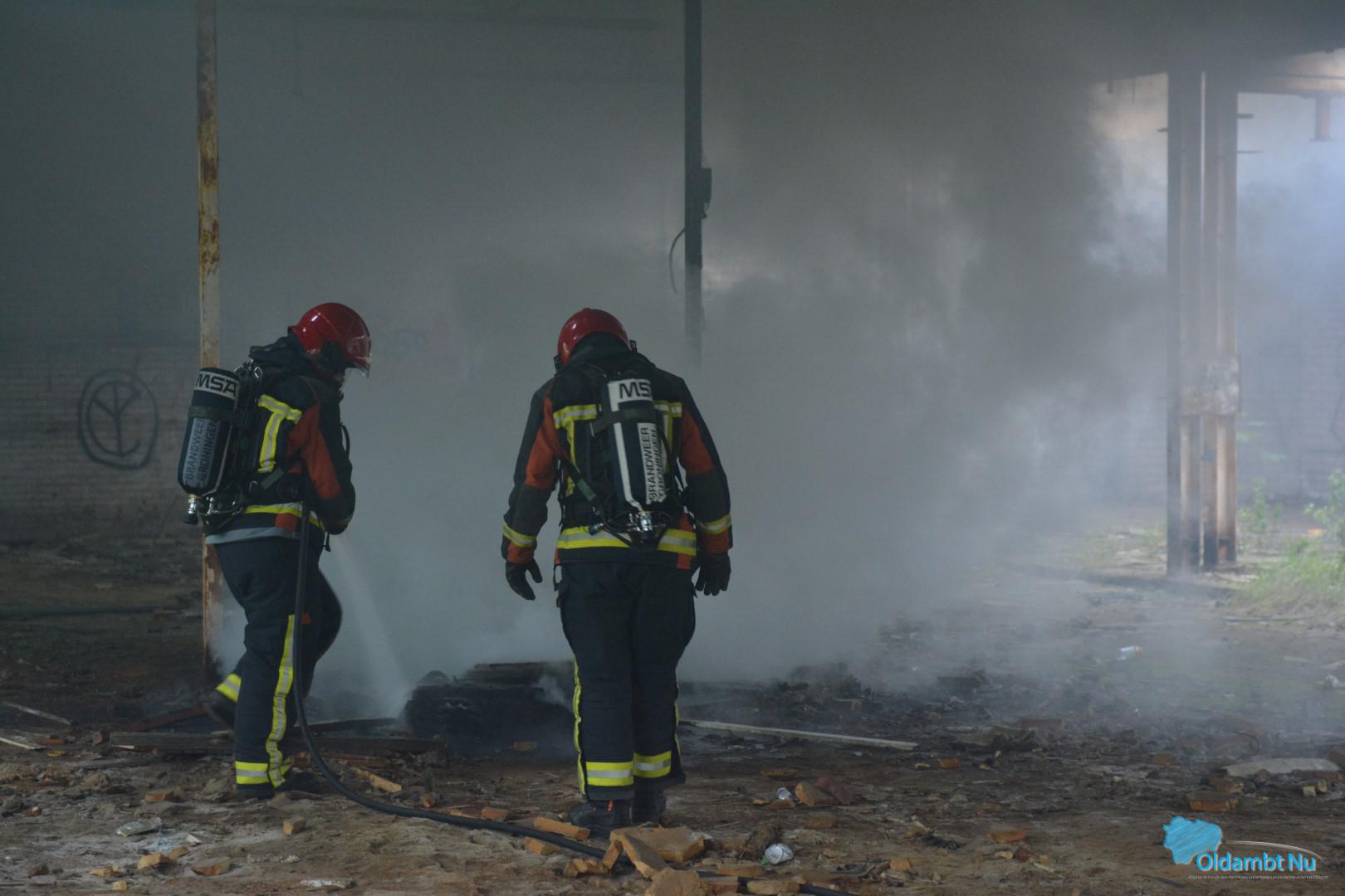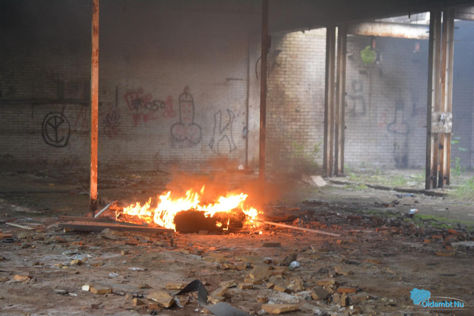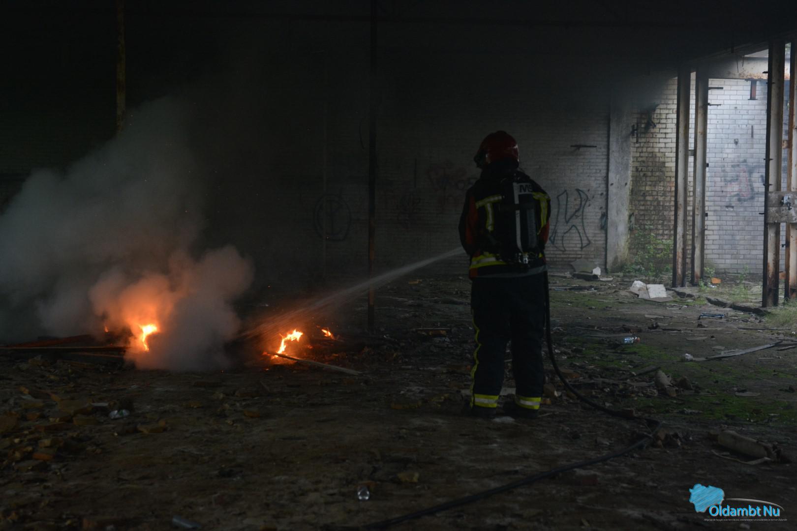 In de oude verlaten loods stond een built met banden en houtbalken in de brand. De brandweer bestreed de brand met een straal water.
