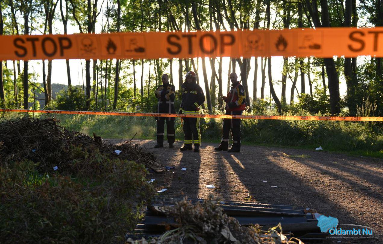 Aangezien er een hoop afval lag met een stapel asbestplaten heeft de brandweer besloten het parkeerterrein uit voorzorg gedeeltelijk af te sluiten.
