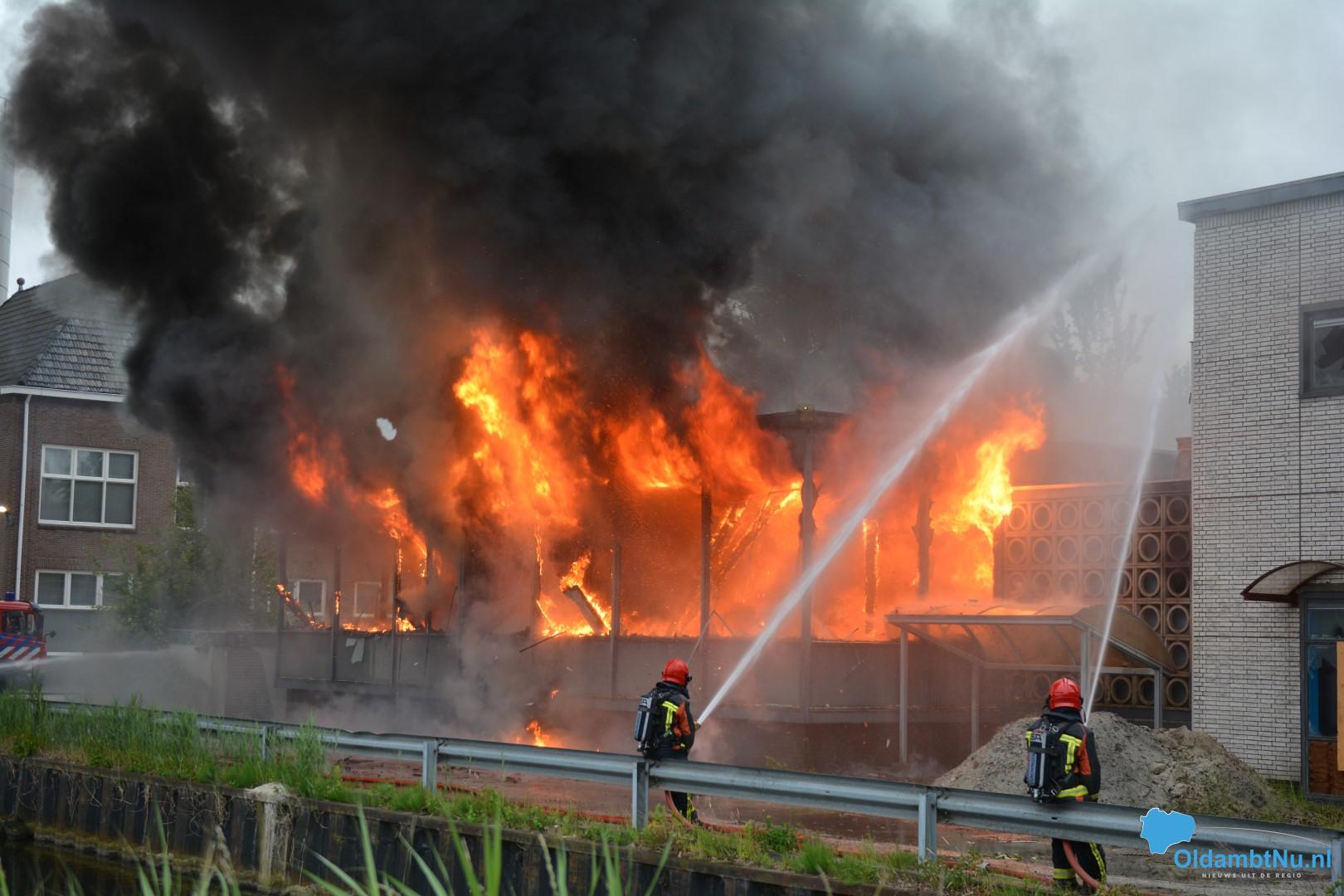 Grote brand in leegstaande kantoorpand Winschoten (video)