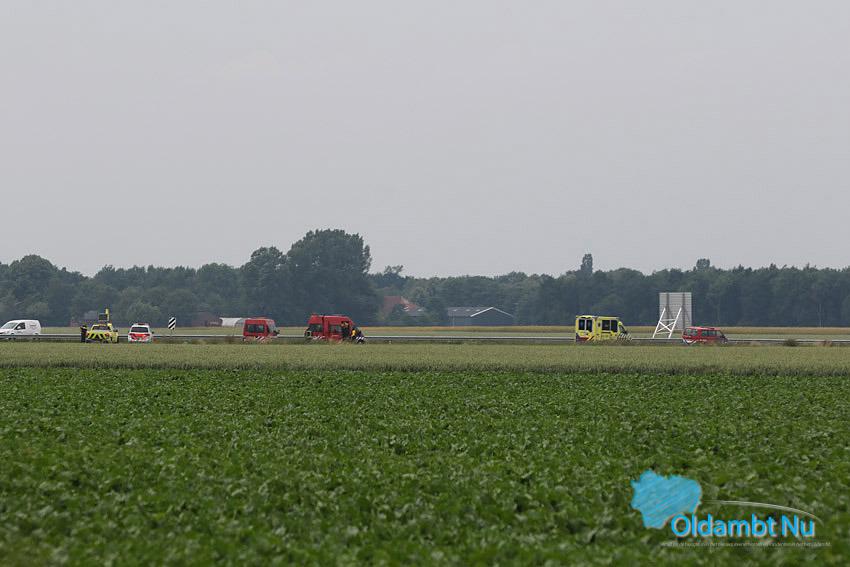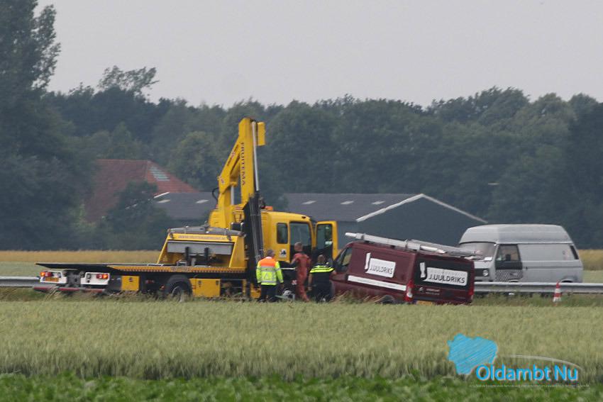 De hulpdiensten waren met meerdere eenheden waaronder het traumateam ter plaatse om hulp te bieden aan de bestuurder die met zijn busje door een onbekende oorzaak in de sloot was belandt.