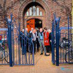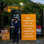 Bij de voormalige Joodse synagoge vond een indrukwekkende performance plaats, bedacht door kunstenaar Willem Dresselhuys. Even voor acht uur kwam de stoet aan en werd ontvangen door de leden van Scouting ‘St. Vitus’ uit Winschoten.
