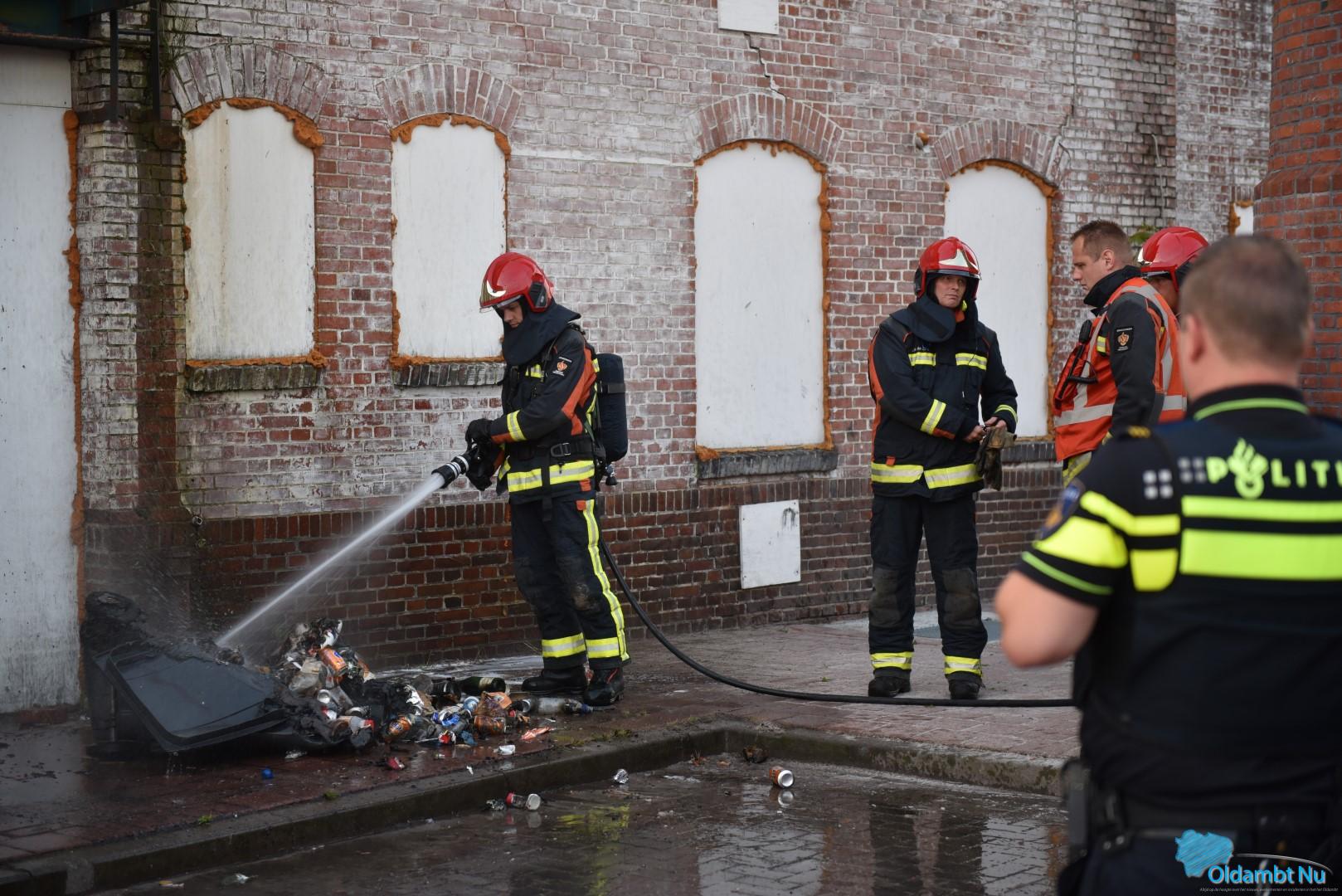 Een buurtbewoner begon het vuurtje al te blussen met emmers water, toen de politie ter plaatse kwam spoten zij ook een schuimblusser leeg. De brandweer van Winschoten heeft vervolgens het brandje volledig afgeblust met een straal water.