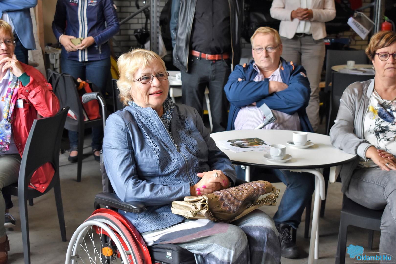 De Zonnebloemauto werd vandaag onthuld door wethouder Bard Boon van de gemeente Oldambt. Klasina Streunding ontving symbolisch de sleutel. Zij is gebonden aan een rolstoel en gaat er binnenkort een dagje op uit met de Zonnebloemauto