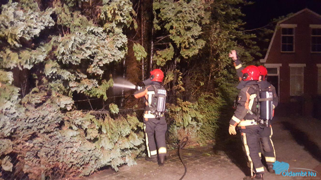Winschoten -Op de Garst in Winschoten moest de brandweer donderdagavond in actie komen om brandende coniferen te blussen.