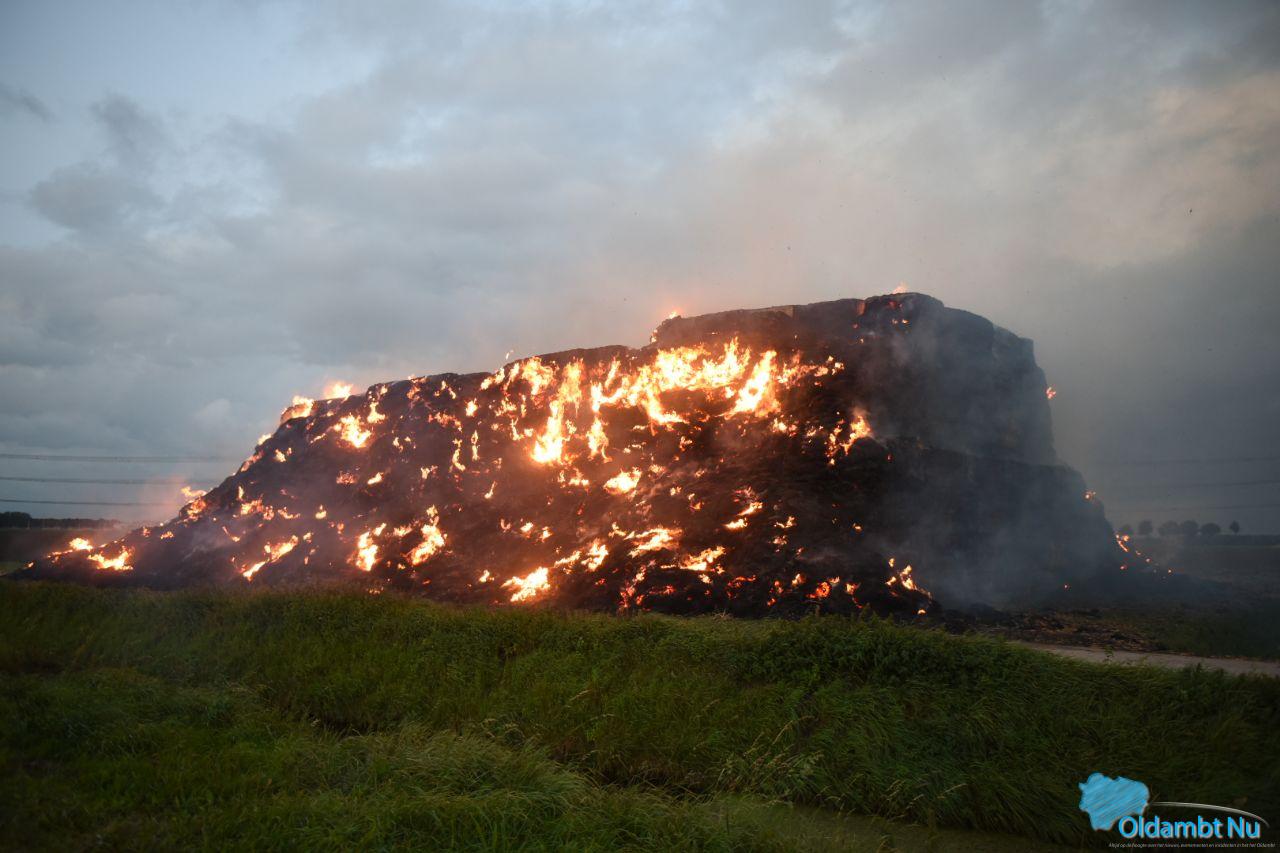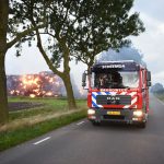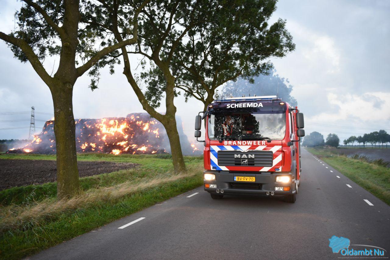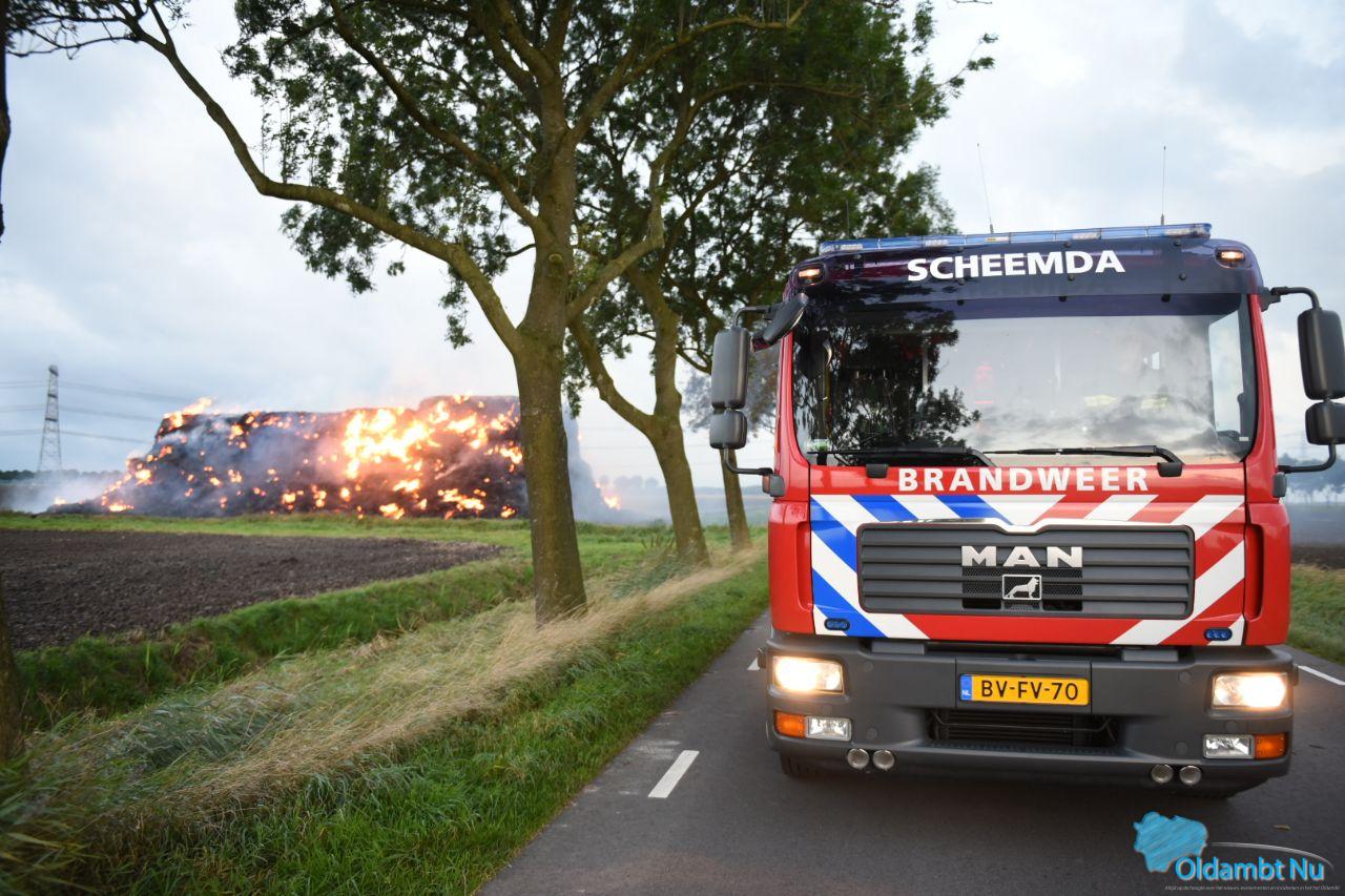 Scheemda – Aan de Scheemderzwaag in Scheemda staat een grote stapel strobalen in de brand.