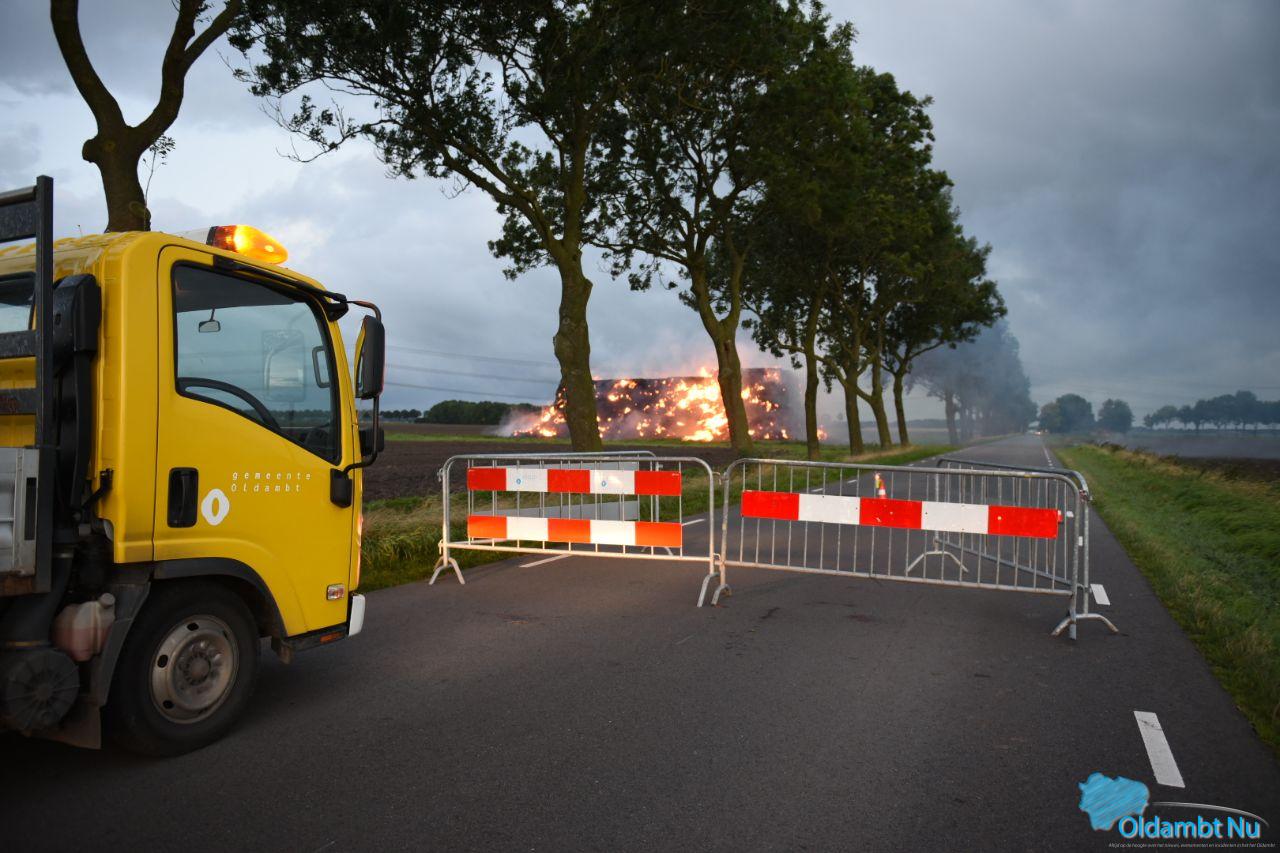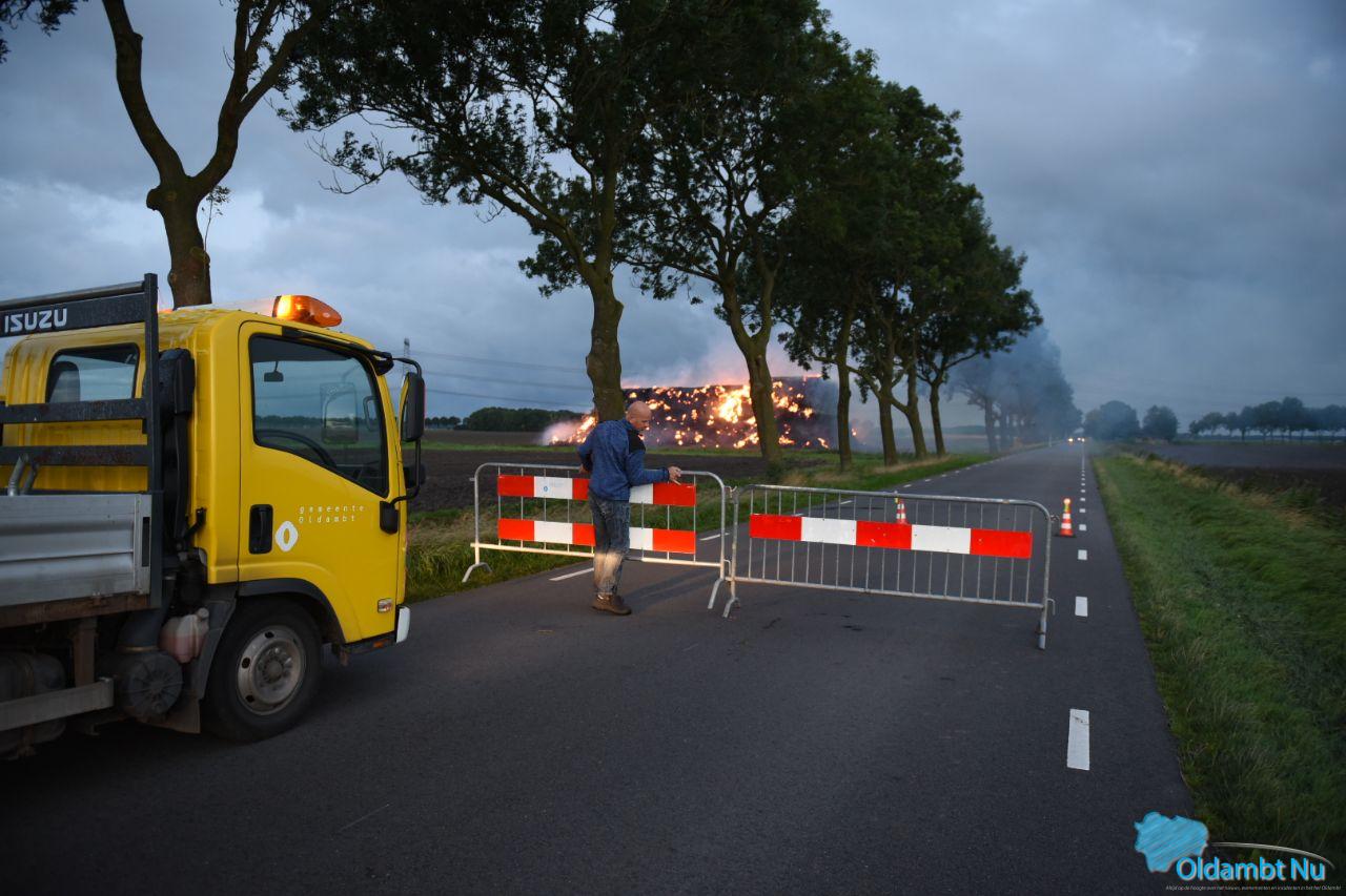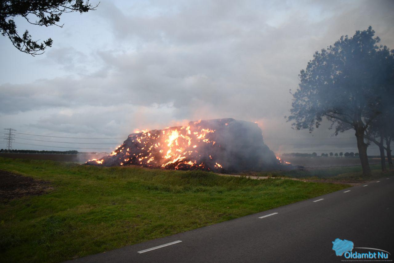 Scheemda – Aan de Scheemderzwaag in Scheemda staat een grote stapel strobalen in de brand.