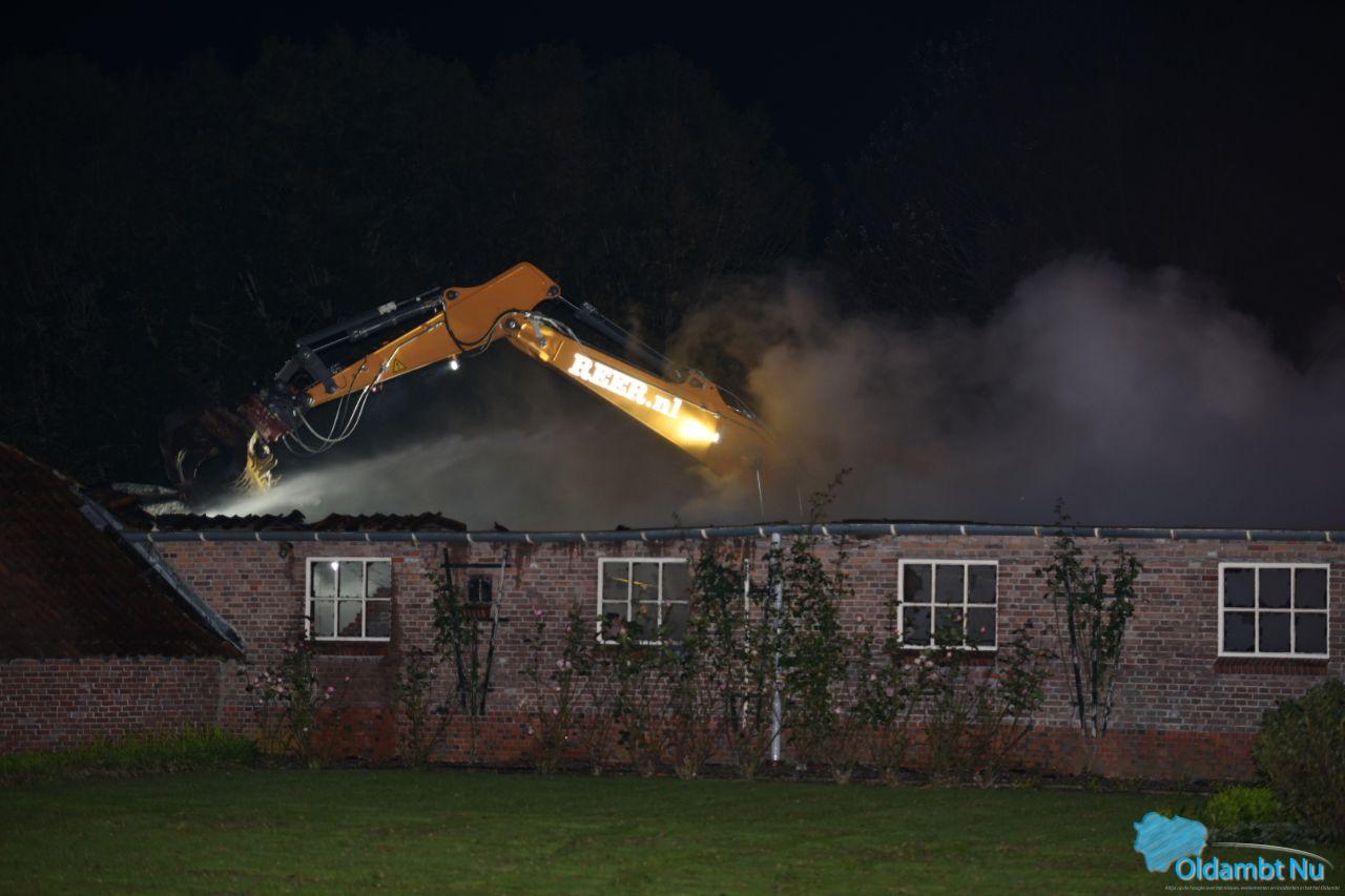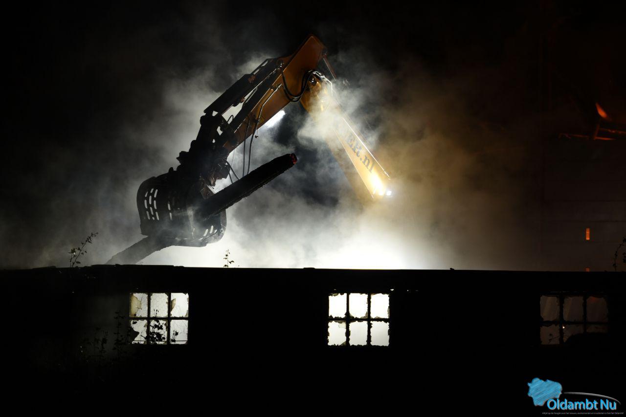 Als het vuur uiteindelijk wel uit is, kan gekeken worden of het mogelijk is om de boerderij te slopen met een shovel.