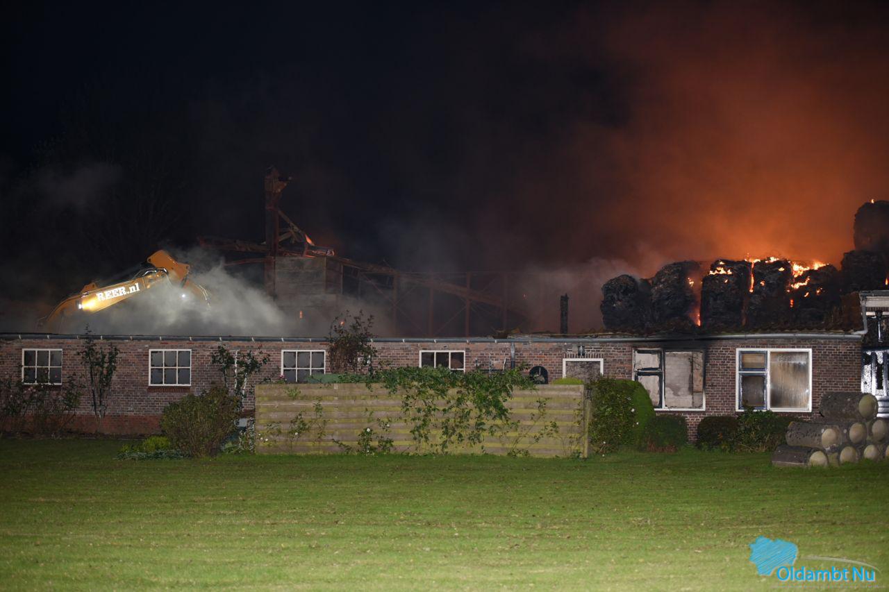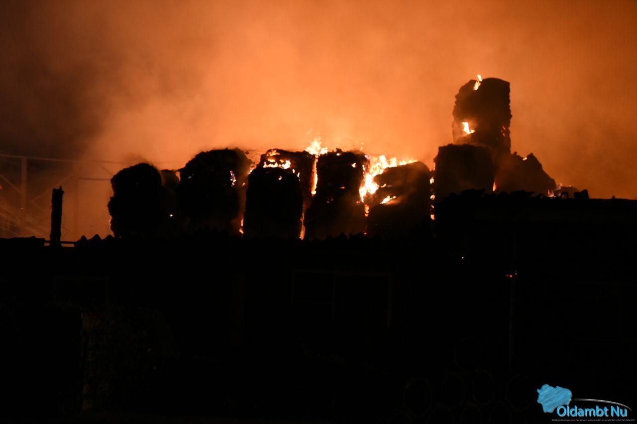 De brandweer laat het vuur oplaaien zodat de brand sneller uit is. Er ligt volgens een woordvoerder nog veel stro in de schuur en dat brandt. ‘Dat is zaterdagochtend nog zeker niet gedoofd.’ De brandweer blust het stro bewust niet, omdat er anders weer veel rook vrijkomt. En dat levert hinder op voor de omgeving.