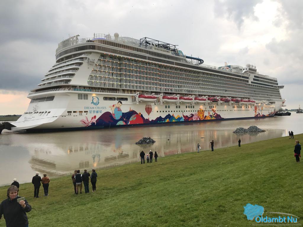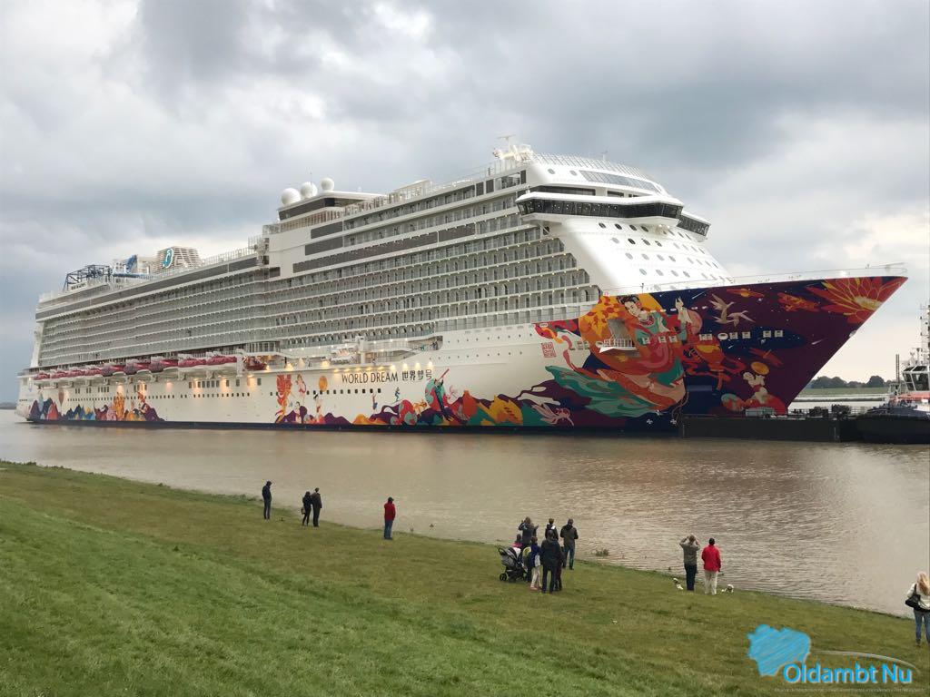 Cruiseschip World Dream trekt net over de grens veel bekijks