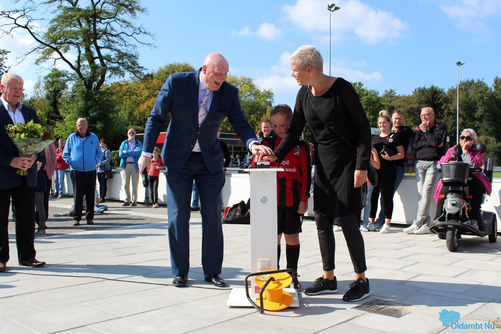 Winschoten – Burgemeester Pieter Smit heeft afgelopen zondag het nieuwe kunstgrasveld op het sportpark bij Winschoter Voetbal Vereniging (WVV) officieel geopend. Dit deed Smit met gezamenlijk met pupuil van de week Dylan Hemmes en de voorzitter Annet de Rooy. Met  één druk op de knop was het veld geopend.
