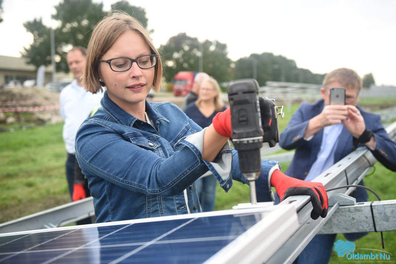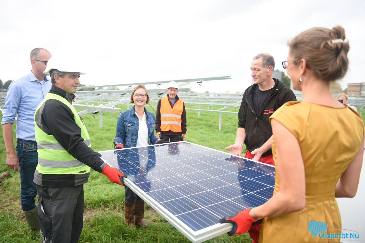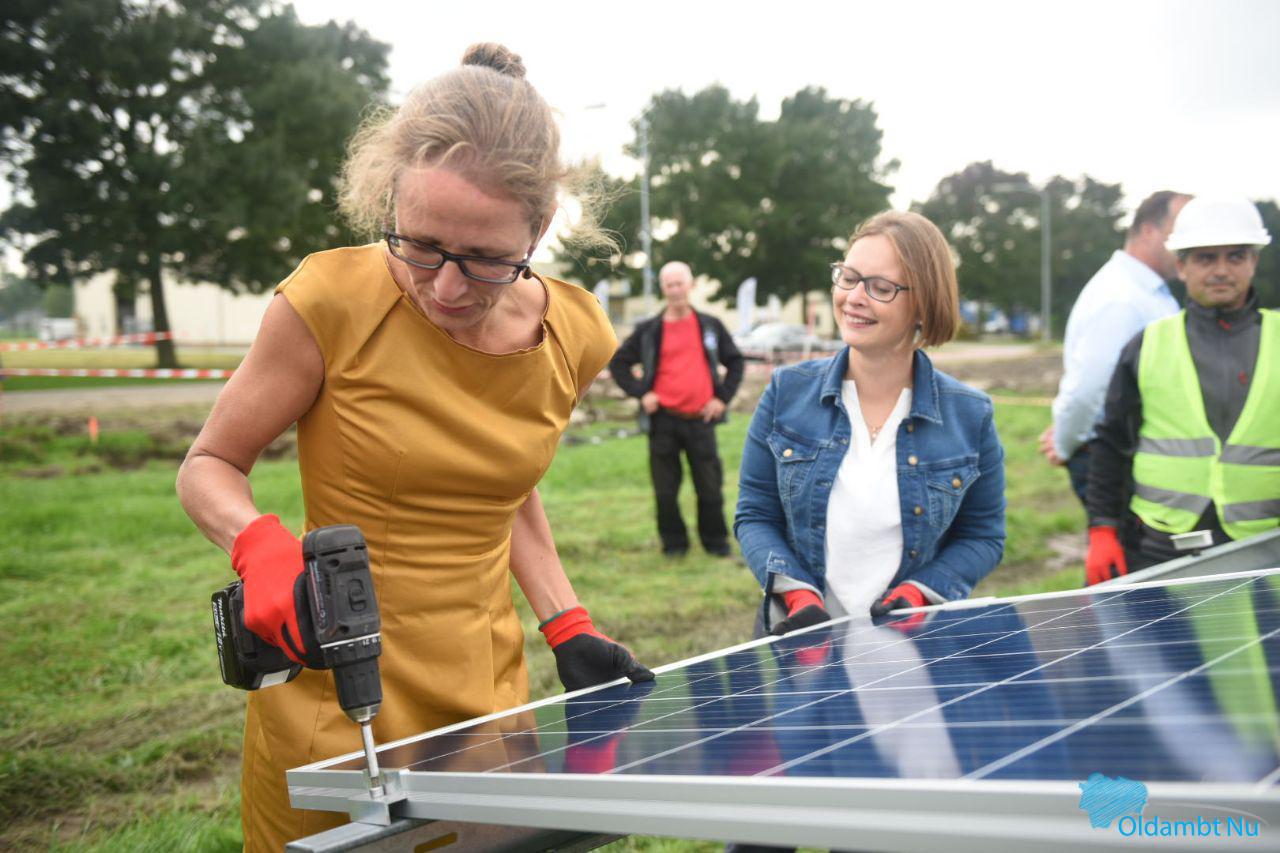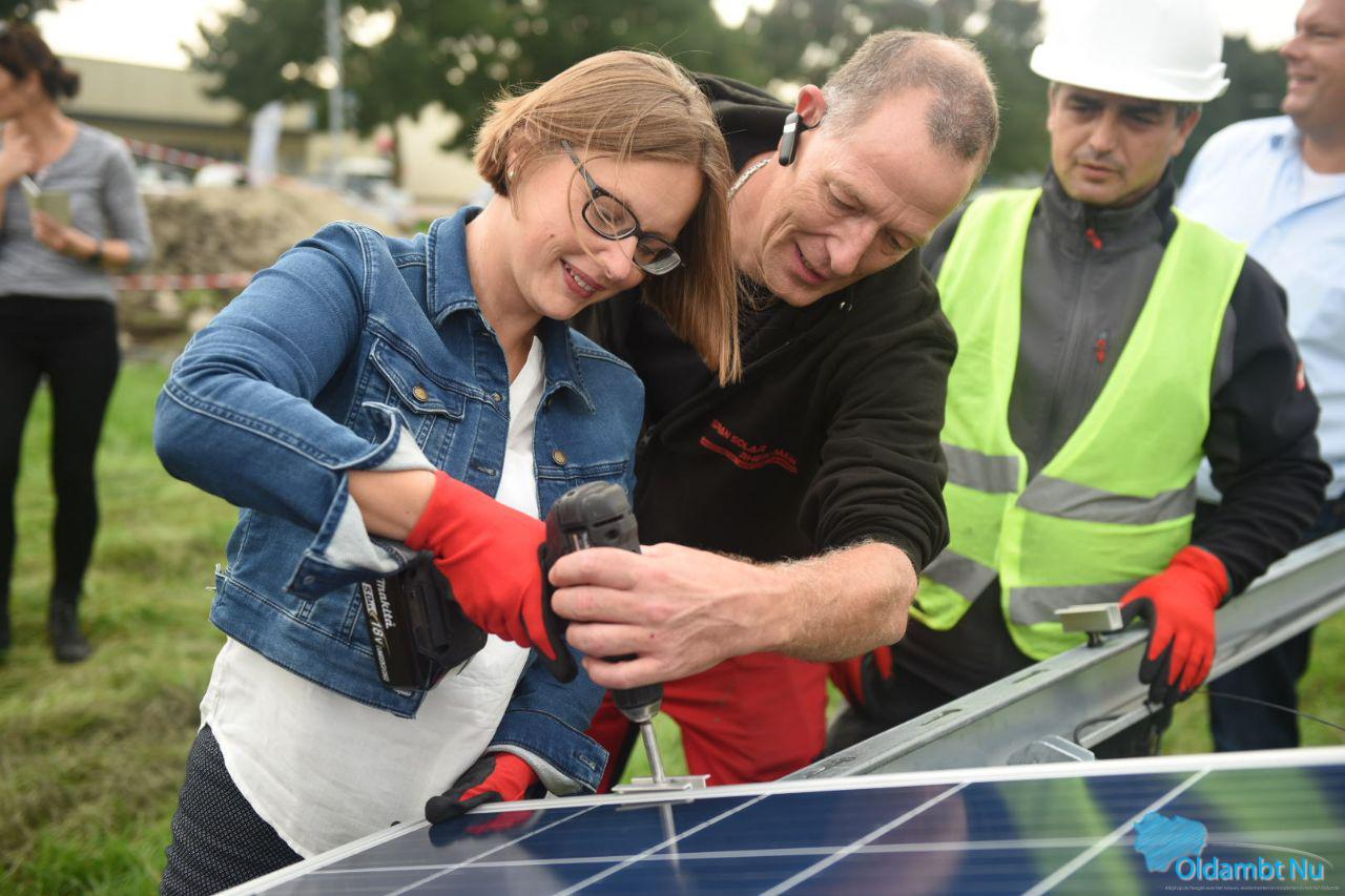 Gedeputeerde van provincie Groningen Nienke Homan (met in haar portefeuille onder andere de energietransitie) en wethouder van de gemeente Oldambt Laura Broekhuizen zullen gezamenlijk het eerste zonnepaneel op de reeds gerealiseerde onderconstructie plaatsen.