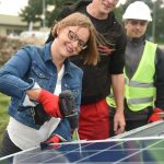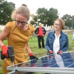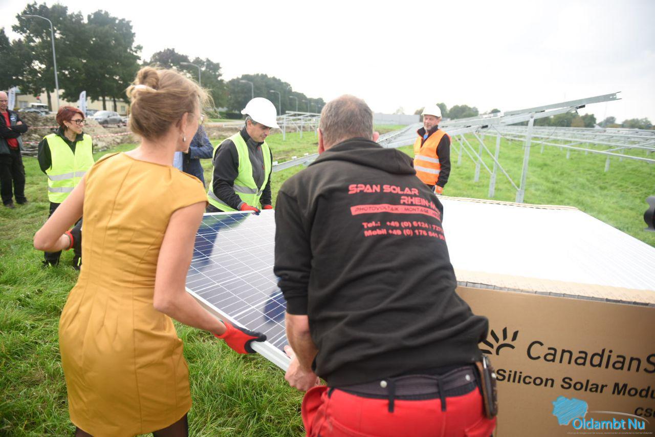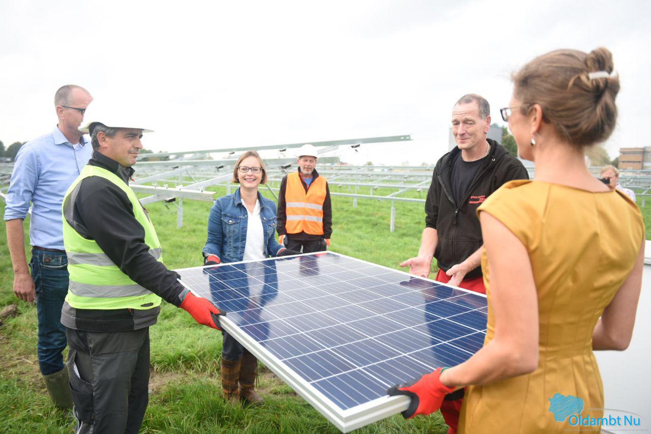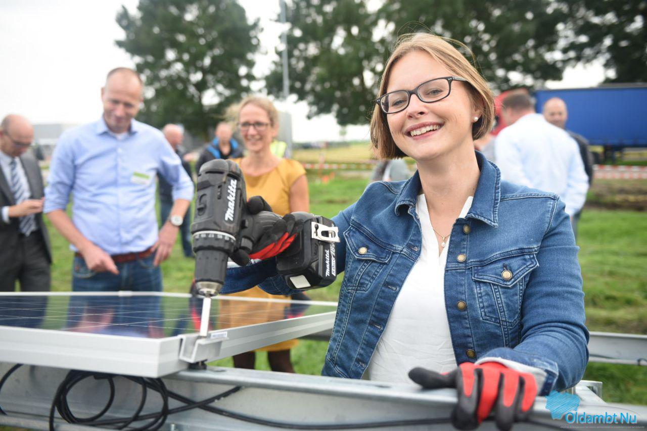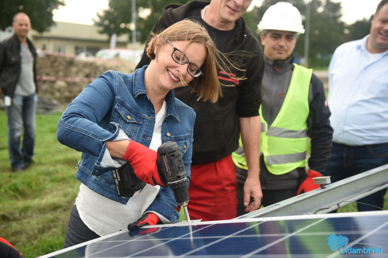 Gedeputeerde van provincie Groningen Nienke Homan (met in haar portefeuille onder andere de energietransitie) en wethouder van de gemeente Oldambt Laura Broekhuizen zullen gezamenlijk het eerste zonnepaneel op de reeds gerealiseerde onderconstructie plaatsen.