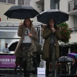 Lange tijd werd er licht getwijfeld over het laten doorgaan van de shows. Uiteindelijk werd besloten om de paraplu’s uit de kast te trekken en met een lach op het gezicht de regen te verslaan. En met succes. De paar honderd toeschouwers werden zo beloond voor de getoonde moeite om naar de catwalk te komen.