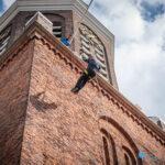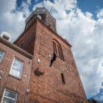 Ook burgemeester Cora-Yfke Sikkema ging de uitdaging aan en overwon haar angst door van de hoge toren af te dalen. “De eerste stappen en dan die brede rand bovenin overgaan, dat vond ik doodeng. Daarna ging het prima en was het een geweldige ervaring, maar ook een overwinning,” aldus de burgemeester.