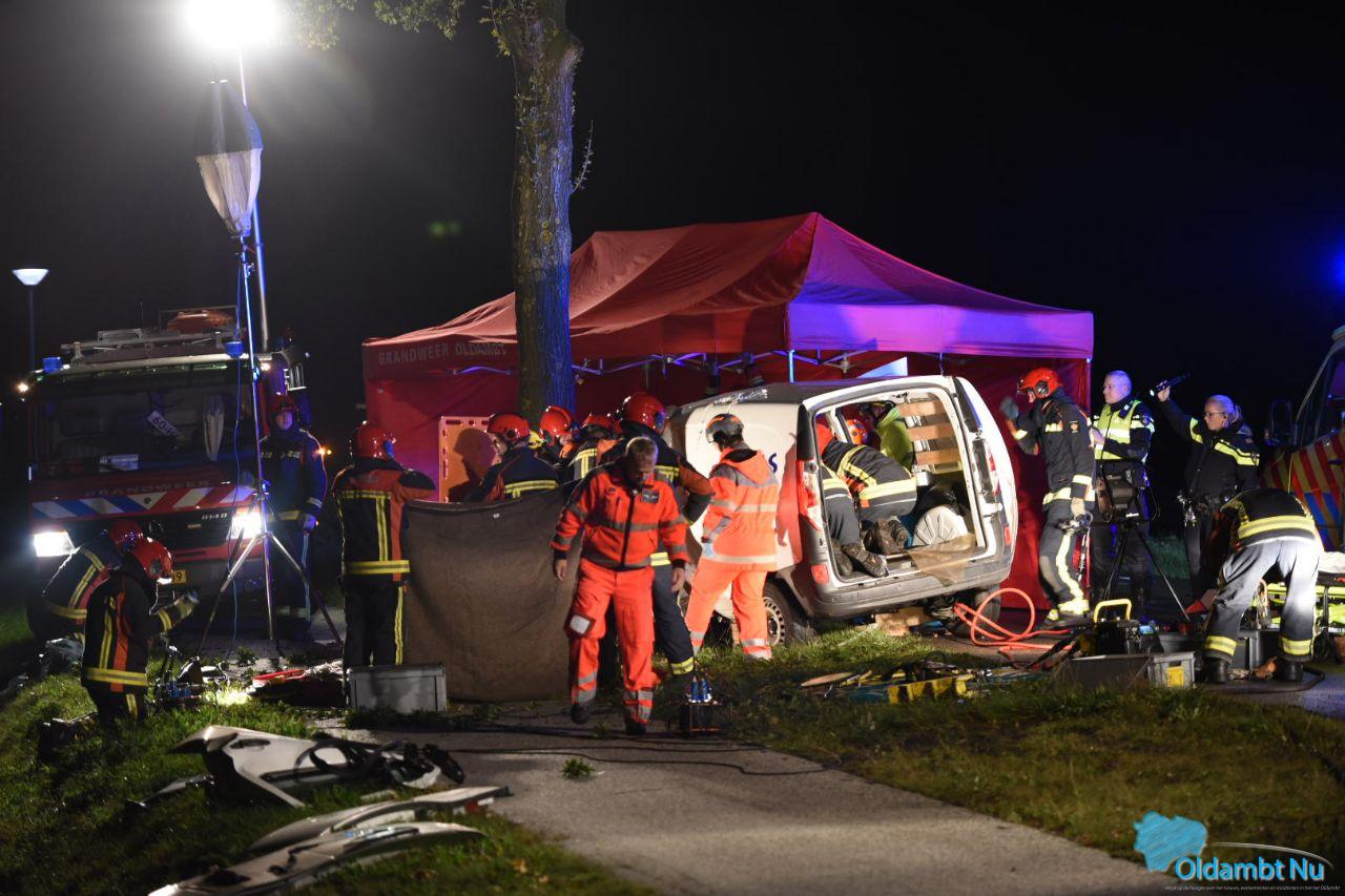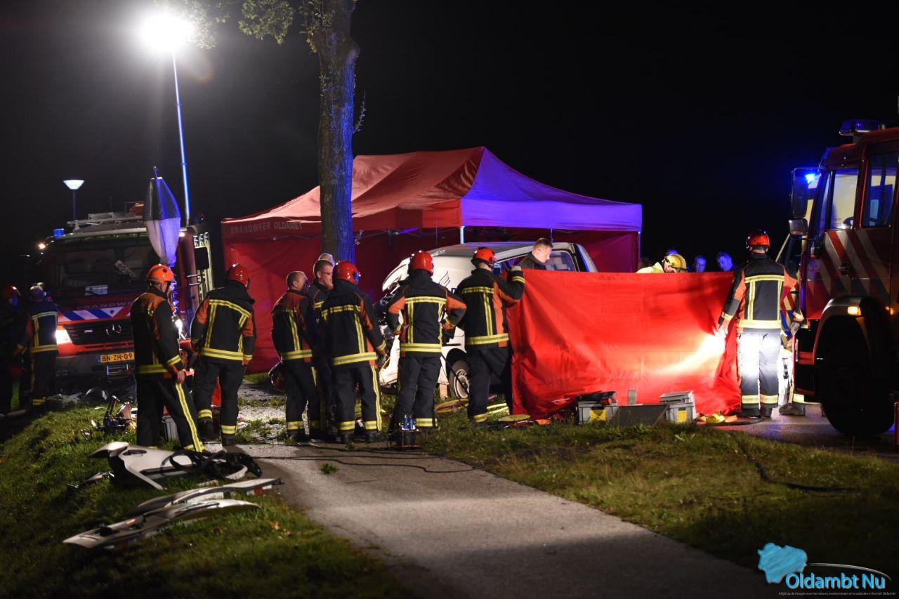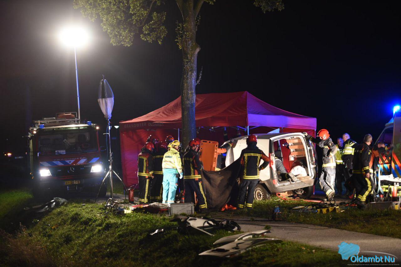 Bestuurder raakt bekneld na botsing tegen boom