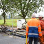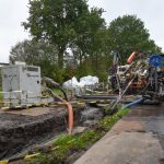 Scheemda – Een nieuwe mijlpaal in de bouw van het nieuwe ziekenhuis in Scheemda. Woensdagmiddag heeft de eerste boring plaatsgevonden tussen de persleiding van het ziekenhuis naar het rioolzuiveringsinstallatie van Scheemda.