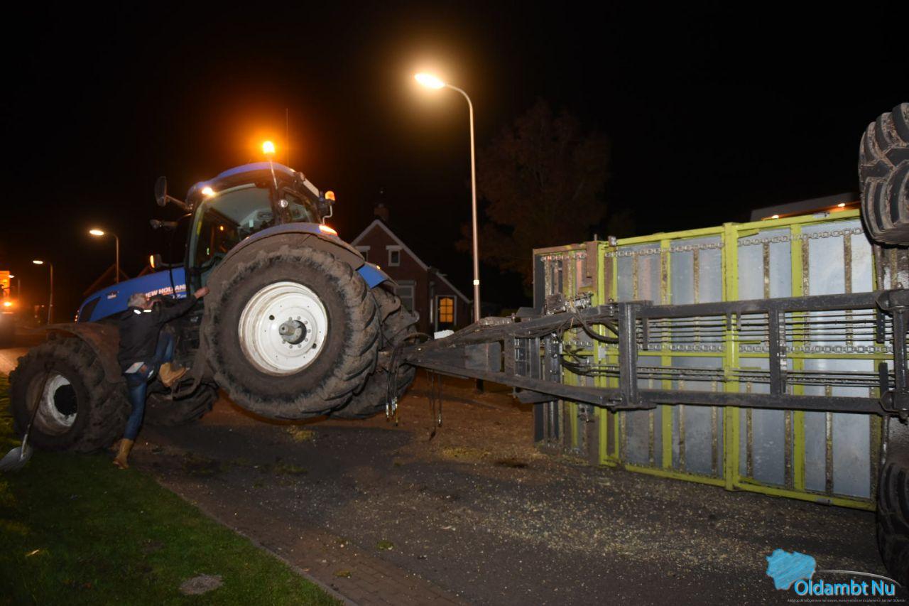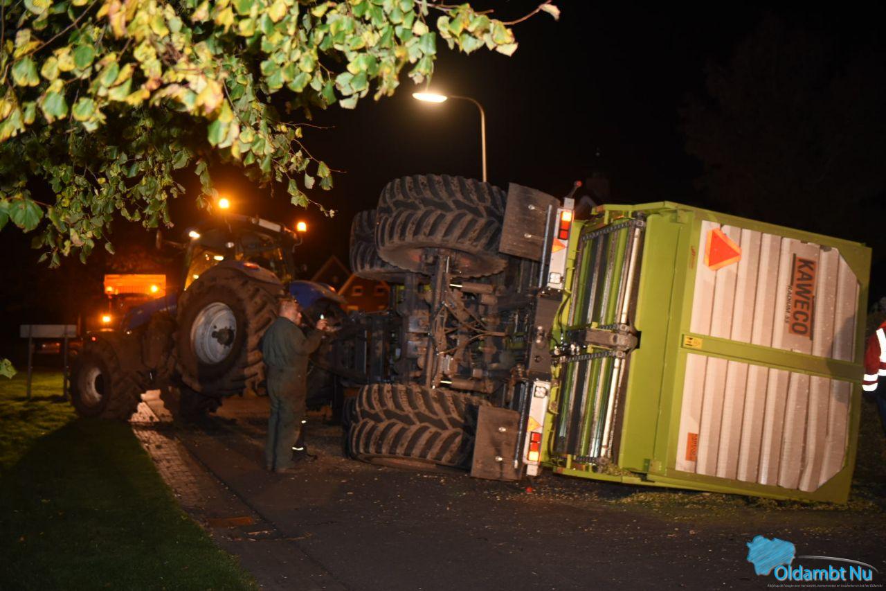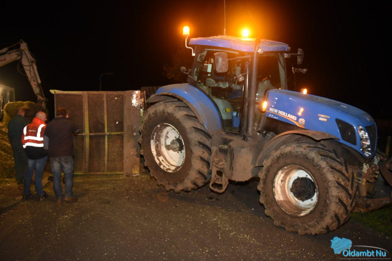 Silagewagen van trekker gekanteld in Oostwold: weg afgesloten