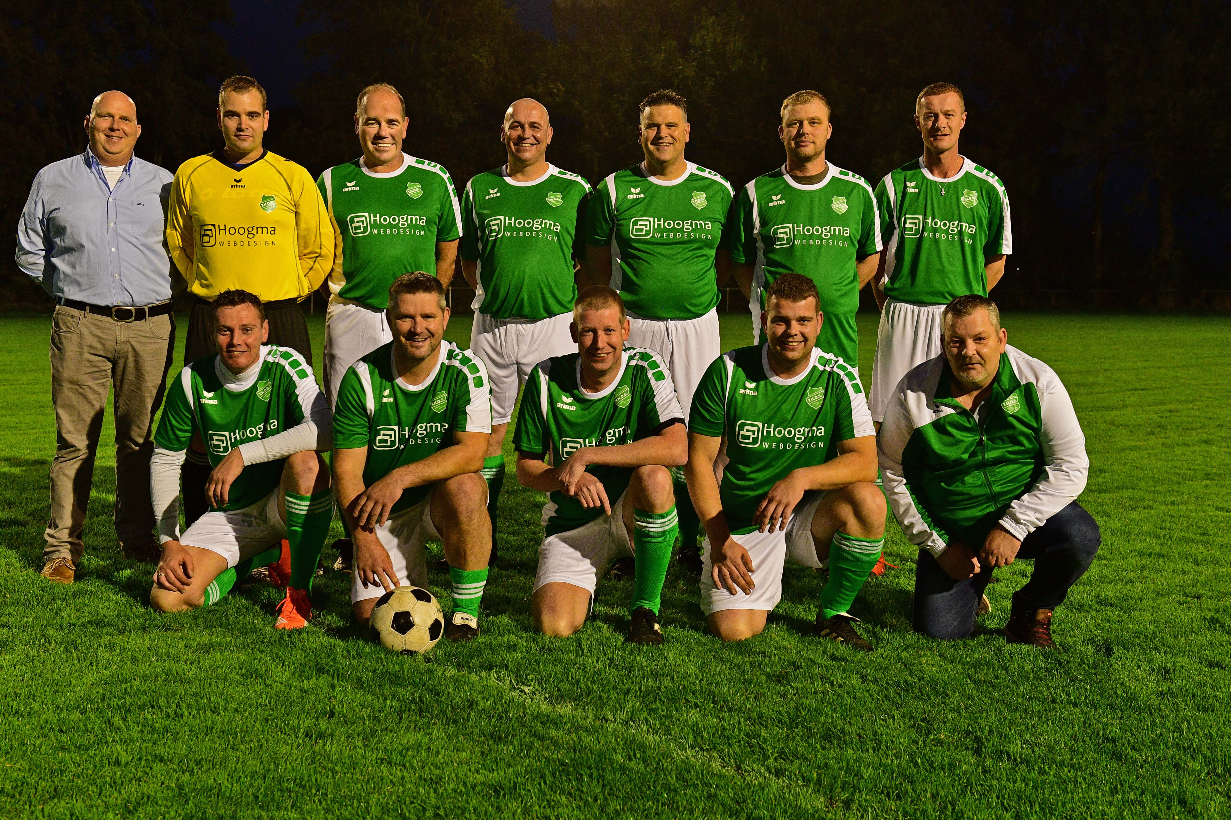 Beerta – Afgelopen vrijdag 13 oktober heeft het 35+ team van SV THOS te Beerta op hun eigen thuiscompetitieavond hun nieuwe tenue in gebruik mogen nemen. De nieuwe sponsor is Hoogma Webdesign uit Beerta.