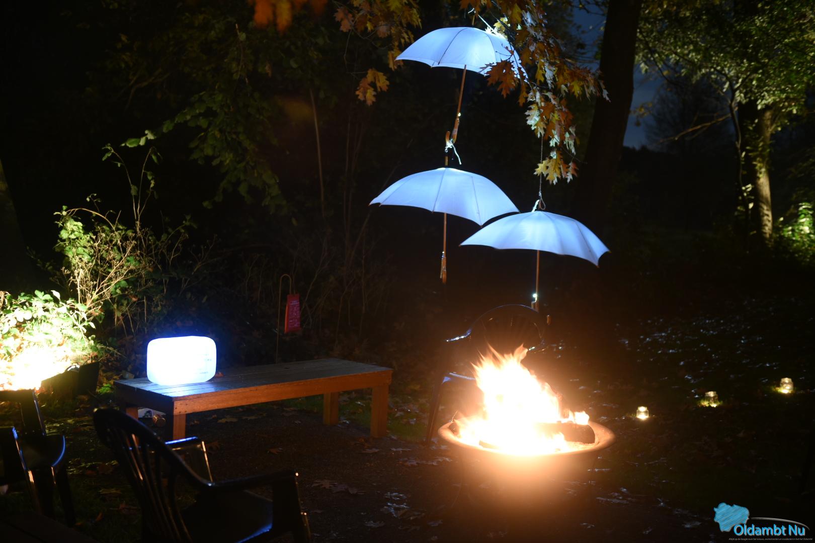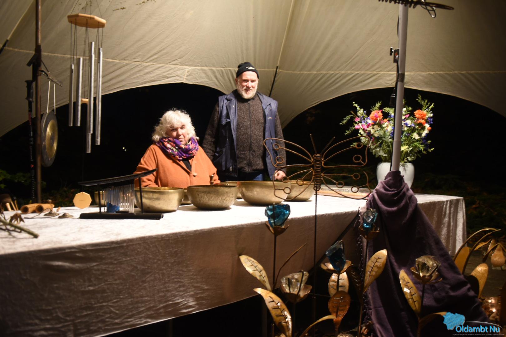 Alberta Kuil en Ank Witteveen hebben samen met vele vrijwilligers en regionale sponsoren het terrein verlicht met honderden lichtjes, fakkels en vuurkorven.