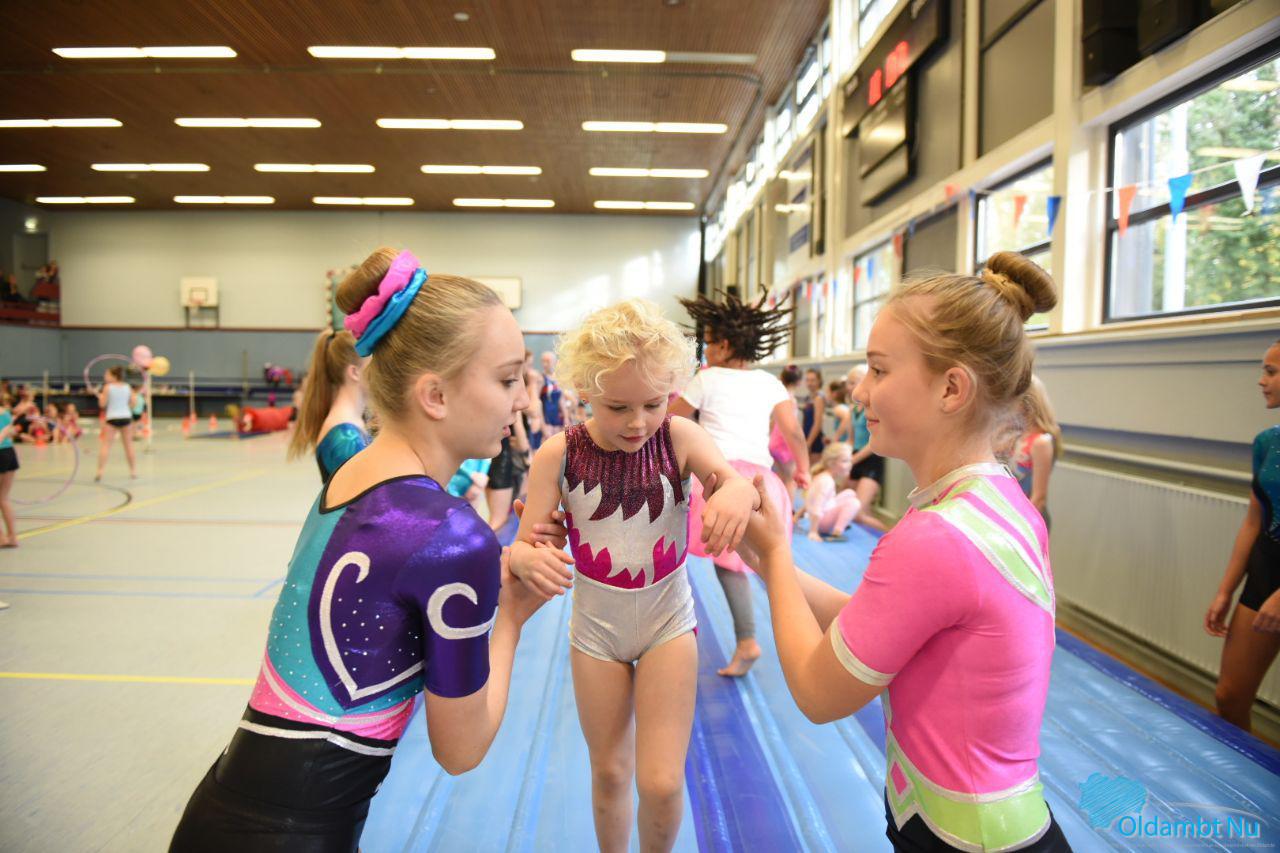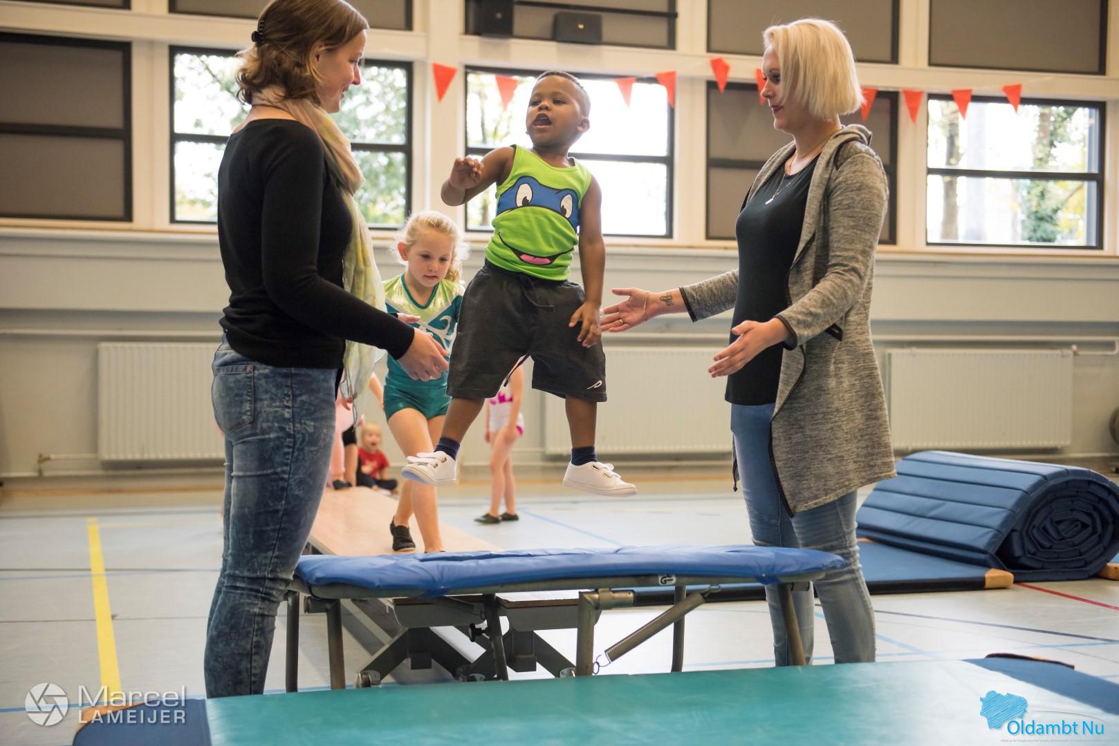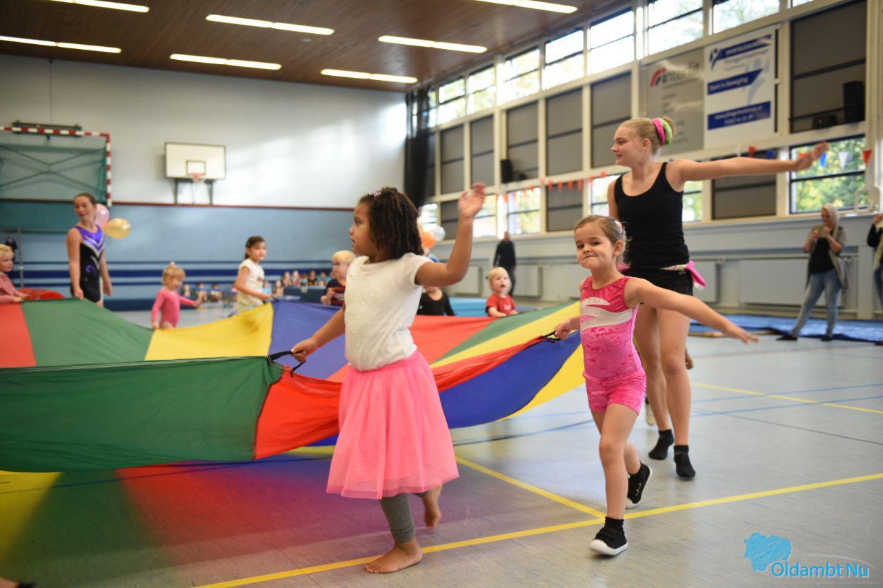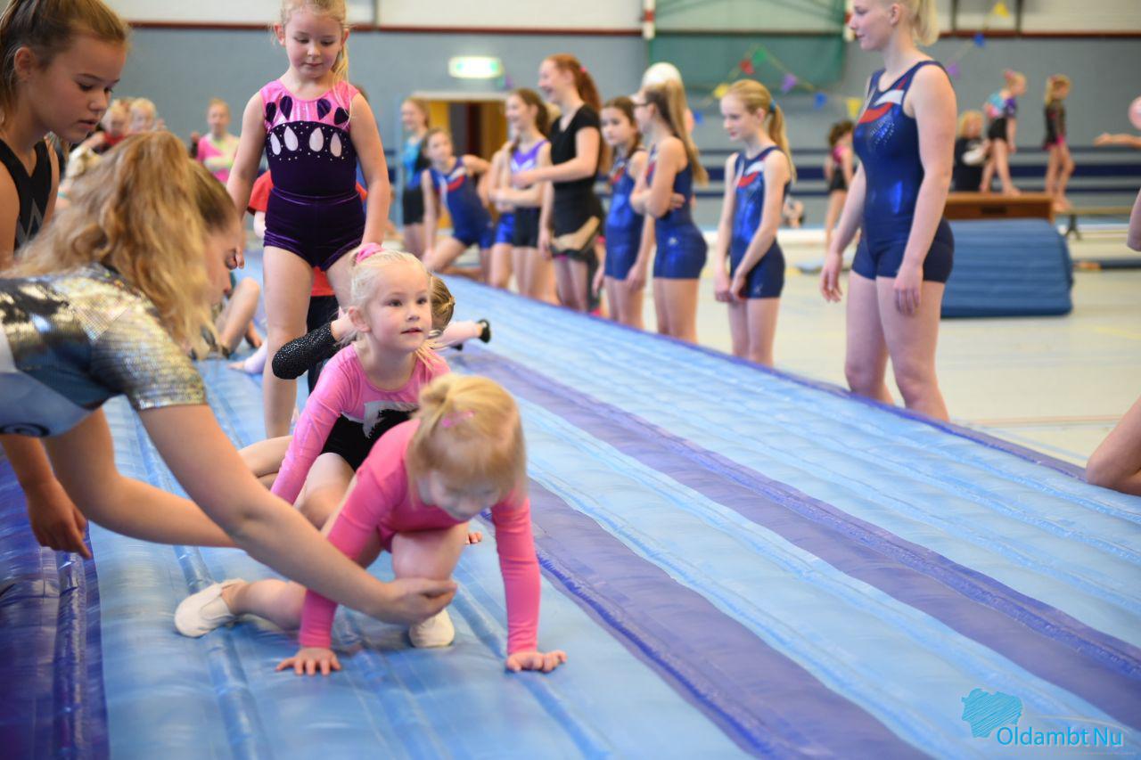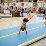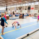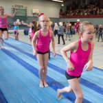 De ochtend werd natuurlijk begonnen met een super leuk warming up dansje zodat iedereen lekker warm en los kwam. Daarna lieten de peuters en kleuters verschillende oefeningen zien met een parachute. Vervolgens lieten de gymnasten hun kunsten zien op de verschillende toestelbanen en konden ze zich uitleven op de twee opblaasbare tumblingbanen. Ook werd er kennisgemaakt met de ritmische sportgymnastiek.