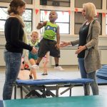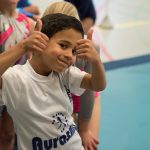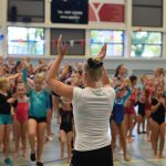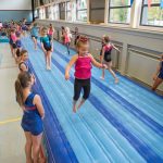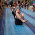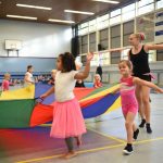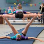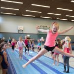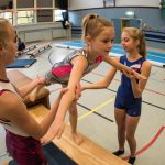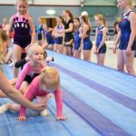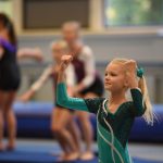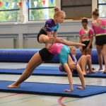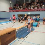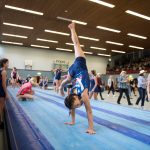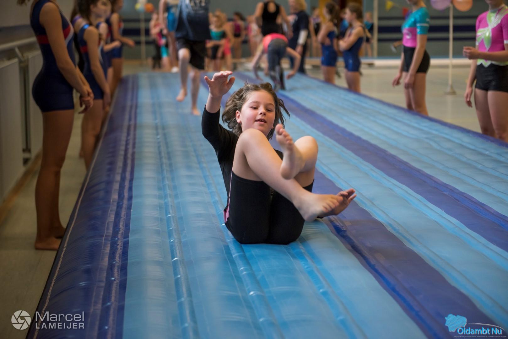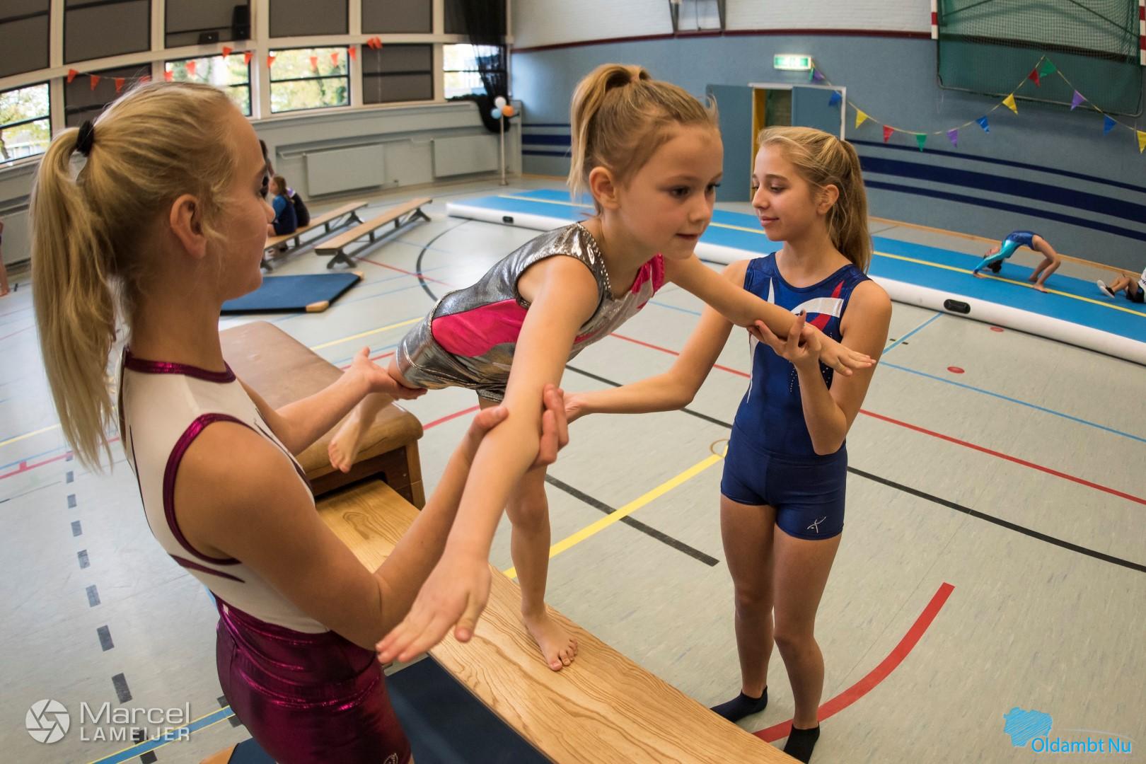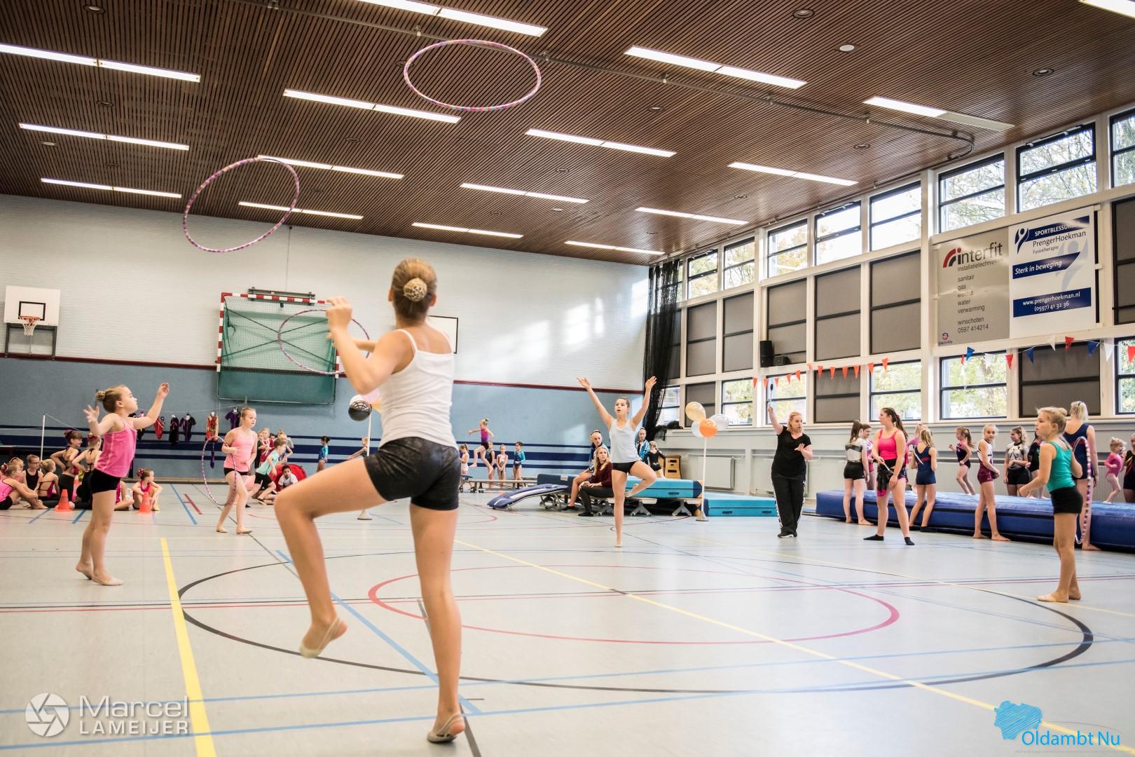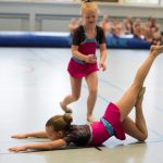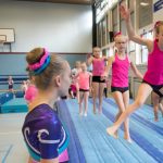 De ochtend werd natuurlijk begonnen met een super leuk warming up dansje zodat iedereen lekker warm en los kwam. Daarna lieten de peuters en kleuters verschillende oefeningen zien met een parachute. Vervolgens lieten de gymnasten hun kunsten zien op de verschillende toestelbanen en konden ze zich uitleven op de twee opblaasbare tumblingbanen. Ook werd er kennisgemaakt met de ritmische sportgymnastiek.