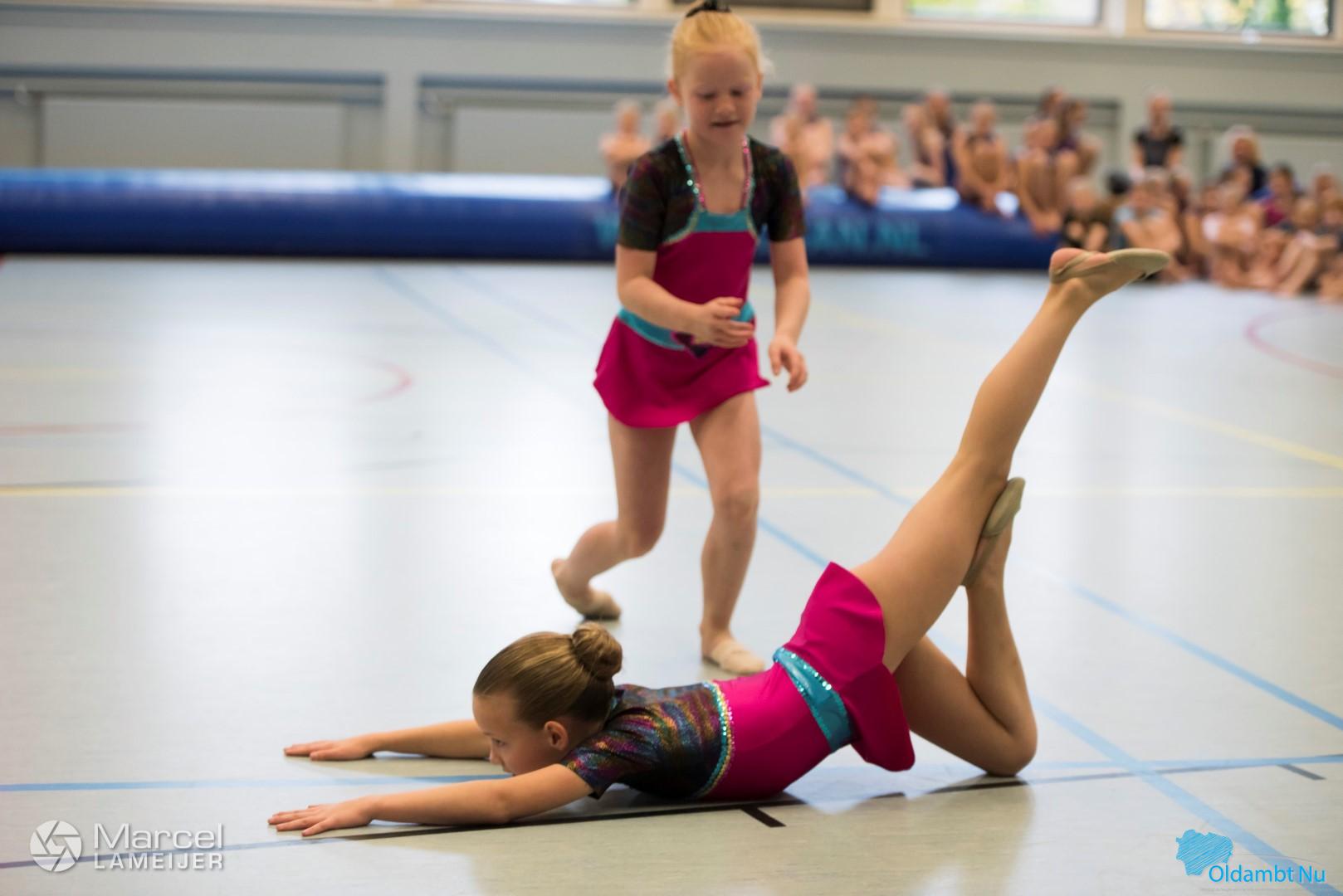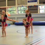 De oudere leden van de Damesgymfit groep en de recreatieve ritmische meisjes lieten mooie dansjes zien. Tussendoor werden door de selectiegroepen Acro, Turnen en Ritmische Gymnastiek mooie demo’s gegeven. Het was een gezellige boel en de tribune zat bomvol met trotse ouders, grootouders en andere belangstellenden.