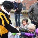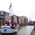 Scheemda – Bij de intocht van Sinterklaas in Scheemda was zaterdagmiddag veel opkomst. Sinterklaas en zijn Zwarte Pieten kwamen per boot aan in de Scheemder haven. Zij werden verwelkomt door Wethouder Bard Boon.