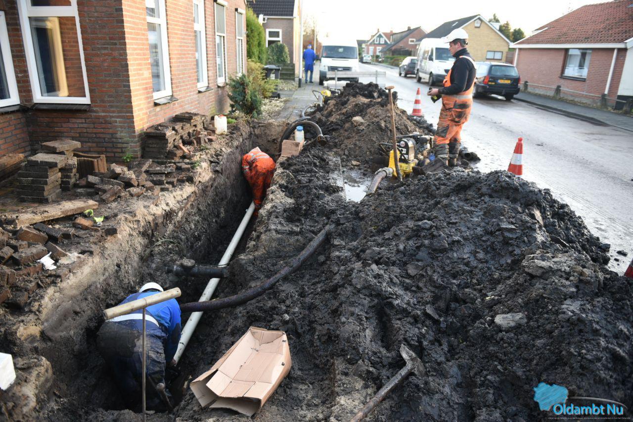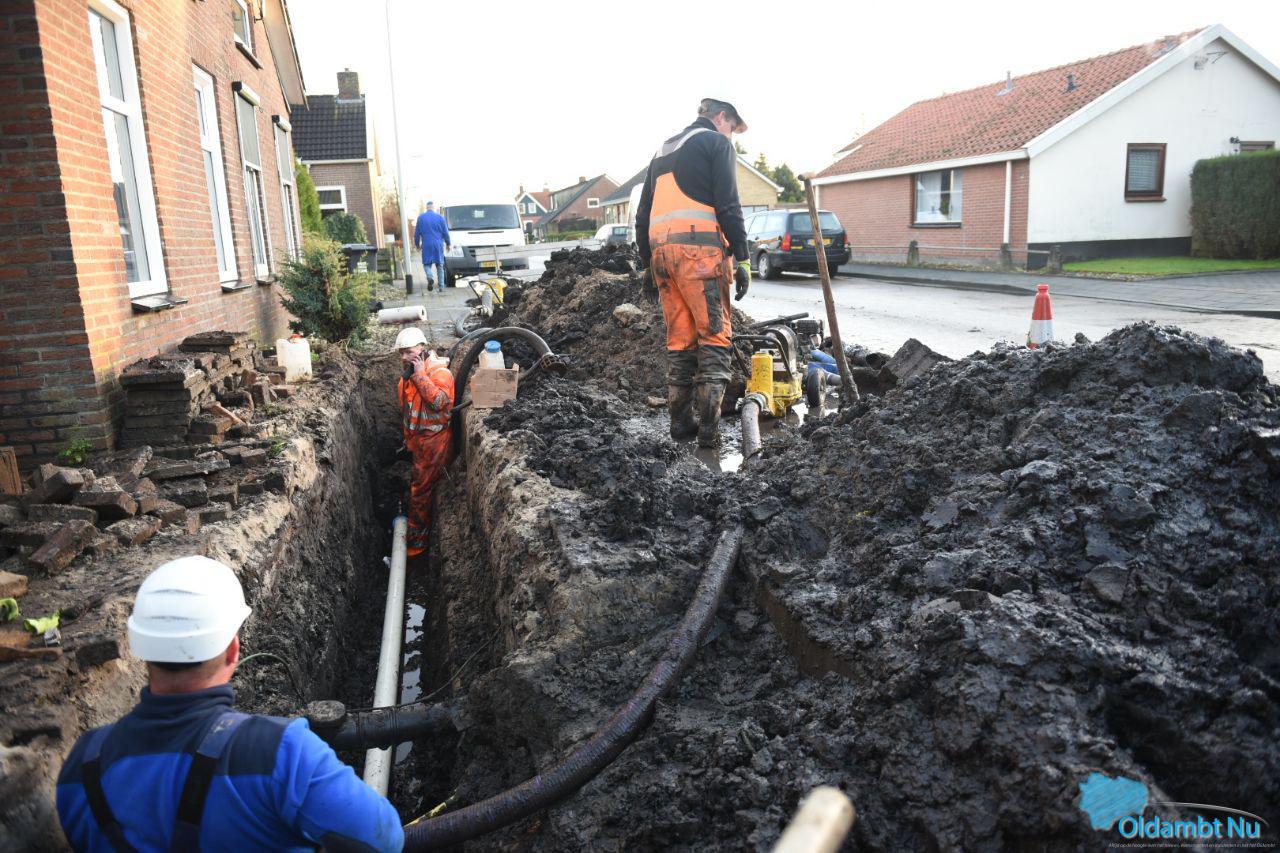 Oostwold – Sinds ongeveer 13:00 uur maandagmiddag zaten ruim 100 huishoudens van de de Klinkerstraat, Beatrixstraat en de Margrietstraat zonder water.