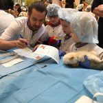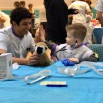 De basisschoolleerlingen kregen zelf ook allemaal een witte doktersjas aan, zodat ze de coassistenten konden helpen bij het ‘beter maken’ van hun knuffels. Vol enthousiasme gingen de kinderen aan de slag, ondertussen nieuwsgierig vragen stellend aan de coassistenten.