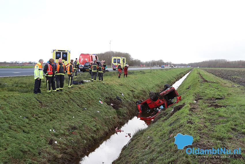 Regio: Scharmer – Bij een ongeluk op de A7 tussen Hoogezand en Groningen zijn zaterdagochtend drie personen gewond geraakt. In het voertuig dat door een nog onbekende oorzaak van de weg raakte en op de kop in de sloot belandde zaten vier personen.