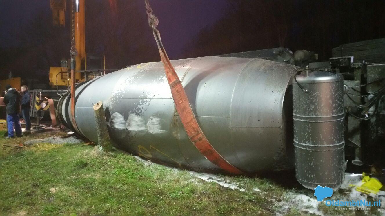 Gistermiddag raakte een vrachtwagen op zijn zijkant op de Oostereinde, hierbij raakte de chauffeur gewond.