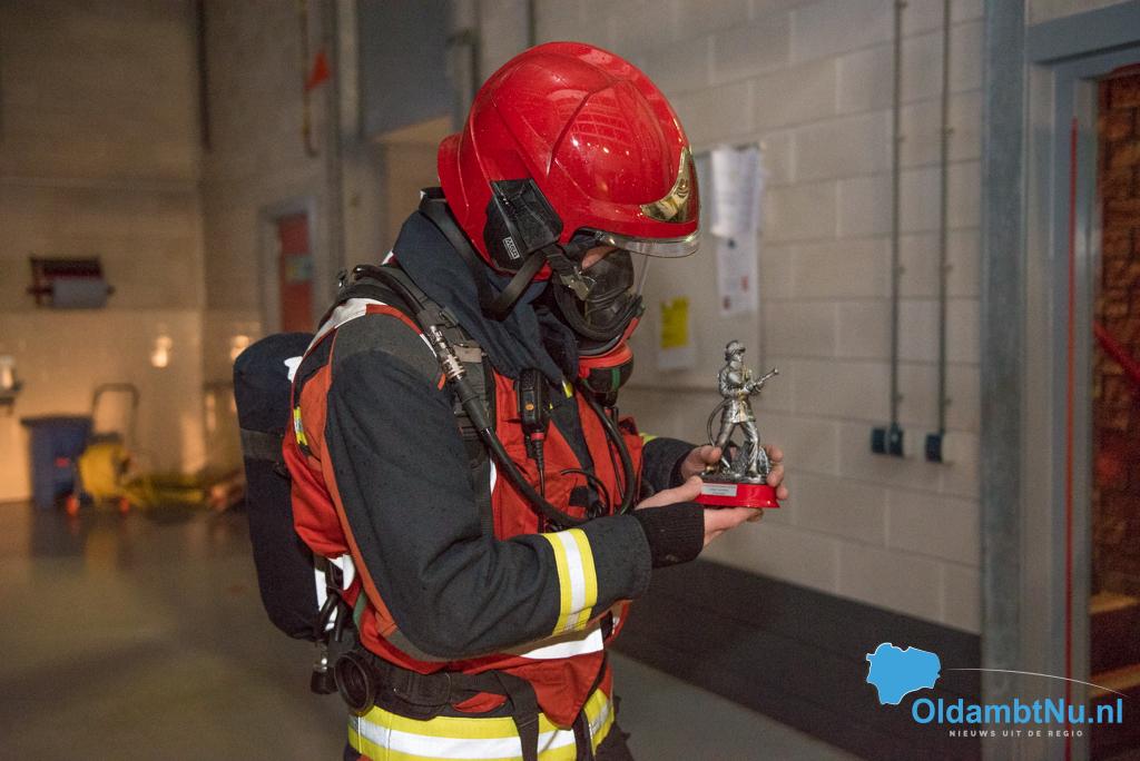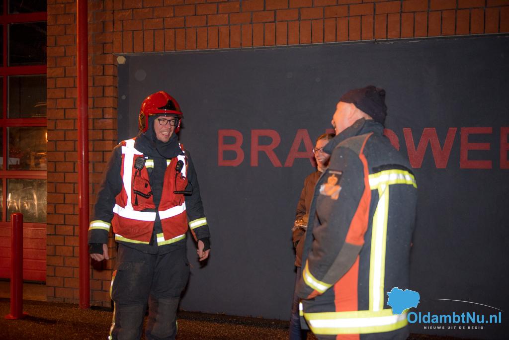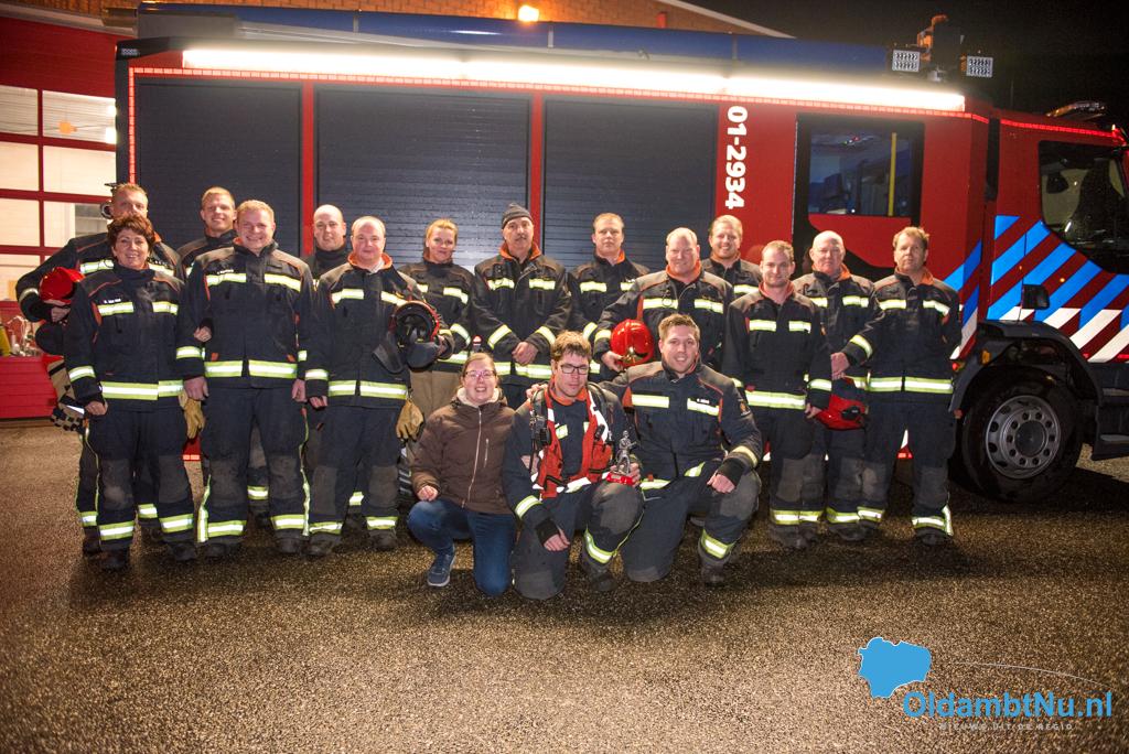Vanavond mocht hij nog één keer uitrukken, niet vanuit de kazerne maar vanaf zijn huis. Als aandenken heeft v/d Burg een brandweer beeldje aangeboden gekregen van het korps.