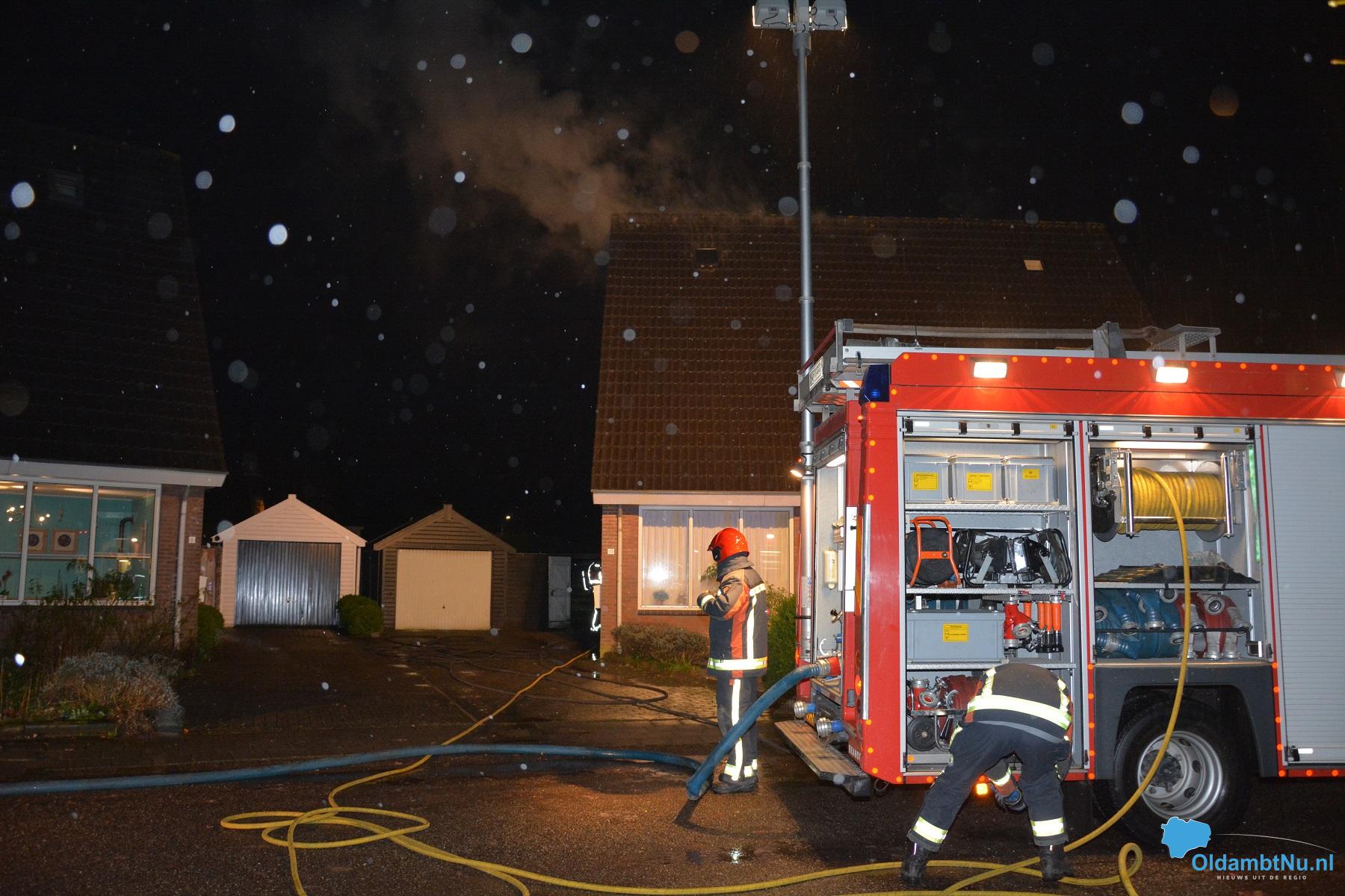 Er bleek in een 2 onder 1 kap woning boven brand te zijn waarbij behoorlijke rook onder het dak vandaan kwam. Oorzaak: een droger in de brand.