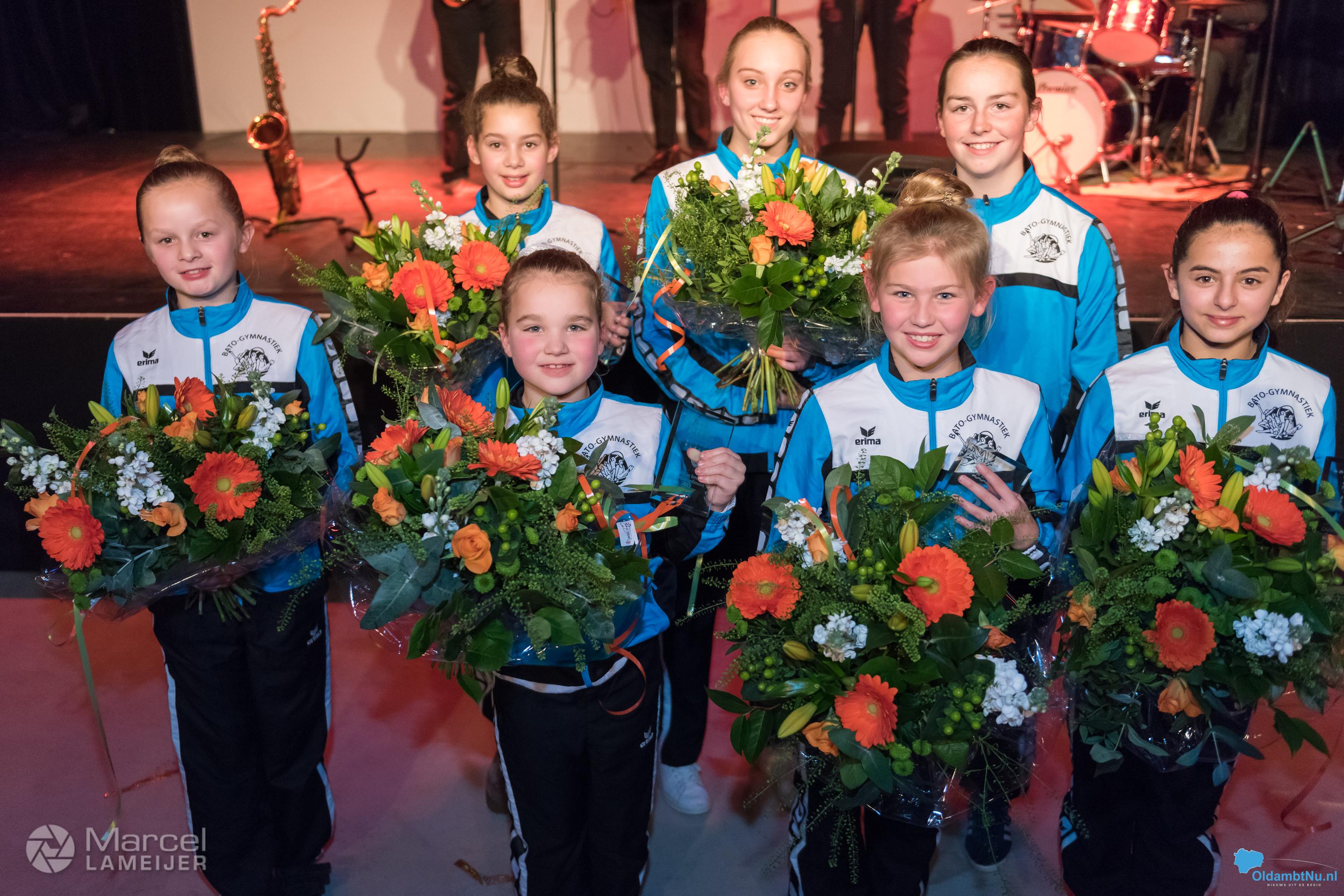 De sporters kregen een beeldje en een bos bloemen als beloning voor hun prestaties het afgelopen jaar.