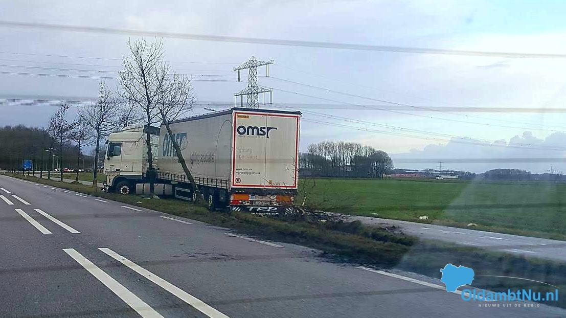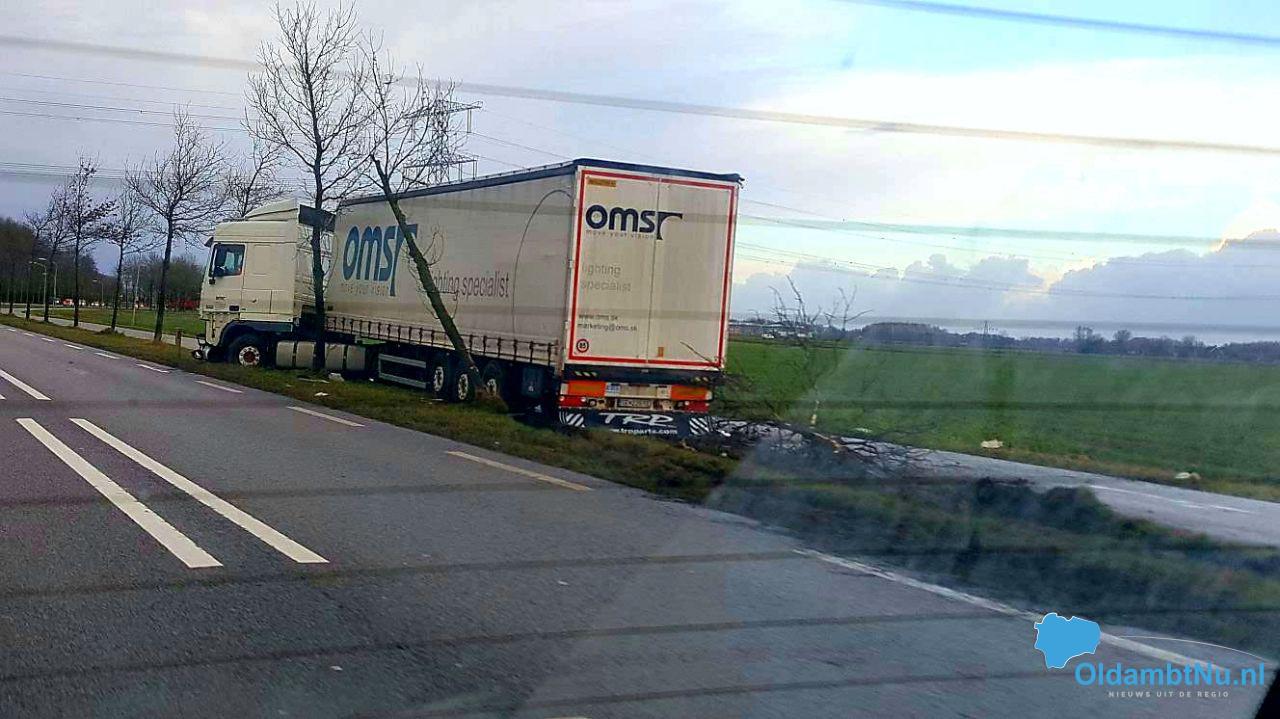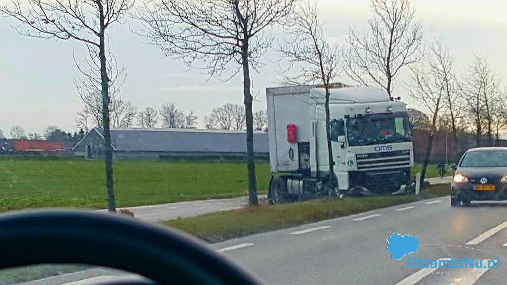 Winschoten – Op de N367 tussen Blijham en Winschoten is woensdagmiddag een vrachtwagen door nog onbekende oorzaak naast de weg in de berm terecht gekomen.