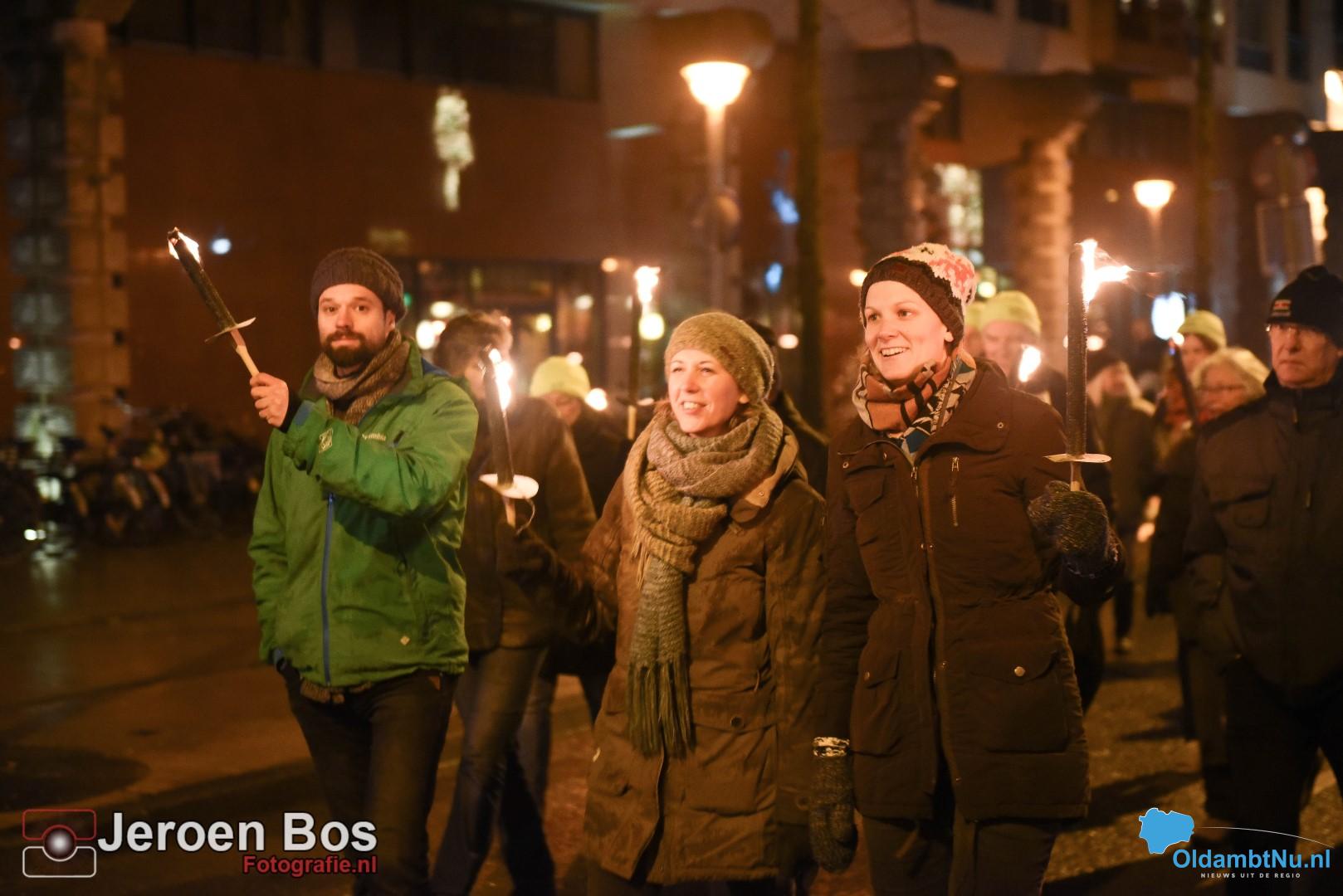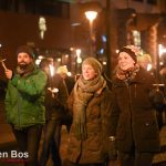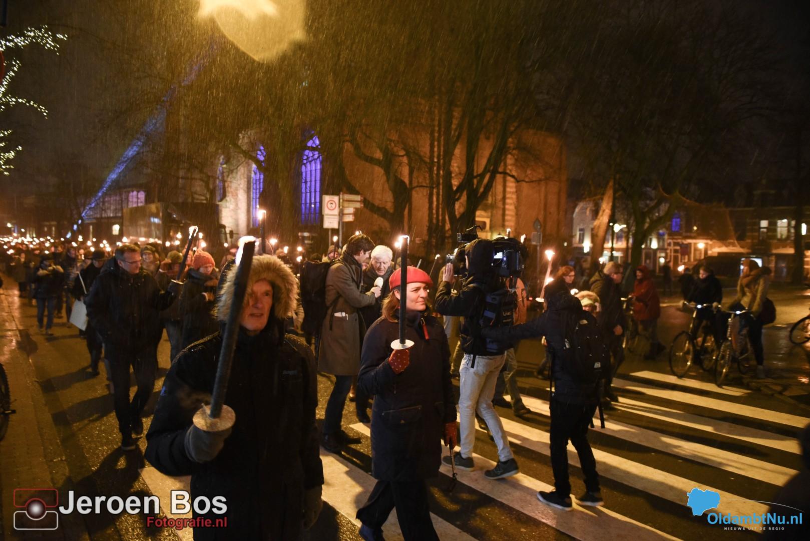 Op het moment dat de eerste demonstranten op de Vismarkt terug waren, moesten nog duizenden aan de tocht beginnen. Er werden 4.200 fakkels uitgedeeld; lang niet genoeg voor iedereen, maar de solidariteit was er niet minder om.